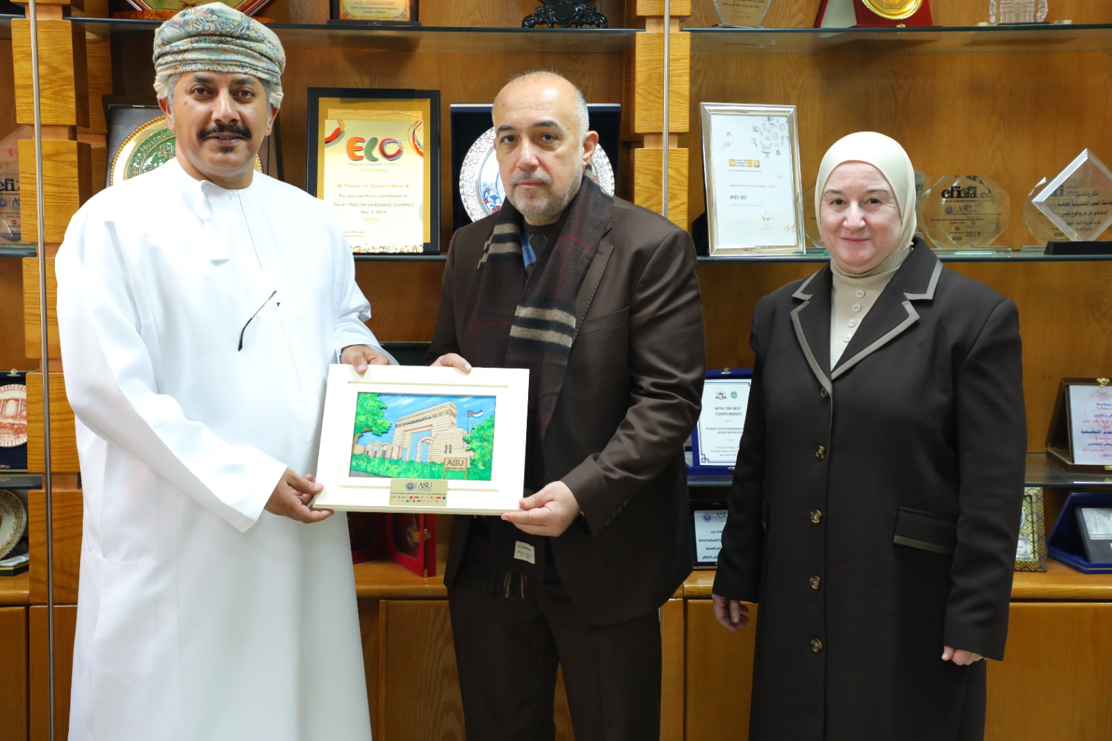 .استقبل سعادة رئيس مجلس امناء جامعة العلوم التطبيقية الدكتور هيثم عبدالله ابو خديجة ورئيس الجامعة الاستاذ الدكتورة سميحة الجراح سعادة الشيخ فهد عبد الرحمن بن أحمد العجيلي سفير سلطنة عمان، ويرافقه سعادة السيد سالم الوهيبي السكرتير أول المحلق الثقافي العماني، والدكتور عبدالله عبيدات رئيس القسم الاكاديمي في الملحقية .و في بداية اللقاء رحب الدكتور هيثم ابو خديجة بالوفد الكريم واعرب عن سعادته بما يقدمه الشيخ فهد من اهتمام بالجالية العمانية بشكل عام و الطلبة بشكل خاص فيما استعرضت أ.د سميحة جراح مسيرة الجامعة ونشأتها وكلياتها وتخصصاتها وما حظيت به من مراكز مرموقة على مستوى المنطقة ، وما تطرحه من تخصصات لمختلف الدرجات العلمية و باستحداثها لكلية طب الاسنان التي تعتبر صرح طبي تعليمي متميز على المستوى الاقليمي و ما تقدمه الجامعة من خدمات طلابيه متميزة للاشقاء العرب بشكل عام و للطلبة العمانيين بشكل خاص ، مشيرةً إلى أن الجامعة تسعى عبر تخصصاتها و كلياتها إلى التميز وتجسيد روح الريادة والإبداع في جودة التعليم وأصالة البحث العلمي وخدمة المجتمع، واشارت ان الجامعة حاصلة على اعتمادات دولية لشتى التخصصات و على اعلى التقييمات و التصنيفات العالمية على المستوى المحلي والعالمي و حرصها على تخريج طلبه مؤهلين ومدربين اكفَاء بحيث تلبّي متطلبات وحاجات سوق العمل.وتضمن اللقاء بحث سبل تعزيز التعاون القائم بين الجانبين والتأكيد على عمق العلاقات المميزة التي تربط جامعة العلوم التطبيقية الخاصة بالملحقية الثقافية العُمانية في الأردن. وفي نهاية اللقاء تبادل الطرفان الهدايا التذكارية فيما اعرب الشيخ فهد بن عبدالرحمن عن شكره لما توليه ادارة الجامعة من اهتمام كبير بالطلبة العمانيين وحرصها على ان تكون في مقدمة الجامعات على المستوى المحلي والاقليمي و استمرارها في الارتقاء بمستواها الأكاديمي في كافة المجالات العلمية.
