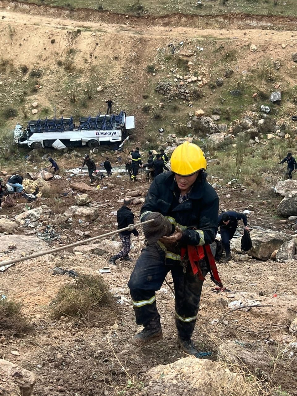 5 وفيات و35 إصابة بتدهور حافلة نقل ركاب على طريق سلحوب (صور