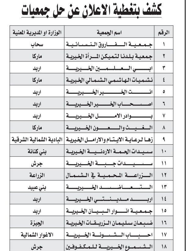 التنمية الاجتماعية تقرر حل 40 جمعية خيرية بالأردن ( اسماء)