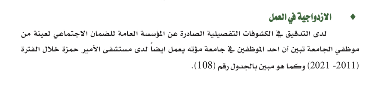 اظهر تقرير ديوان المحاسبة لعام 2022 وجود موظف في جامعة مؤتة يعمل ايضا في مستشفى الأمير حمزة من عام 2011