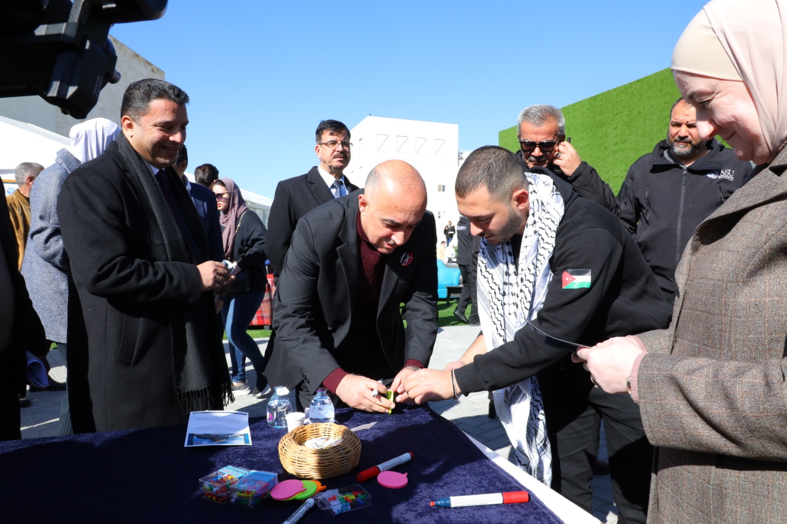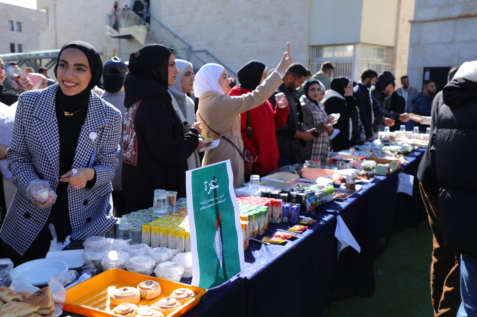 انطلاقاً من واجبنا تجاه القضية الفلسطينية ودعماً لصمود أهلنا في غزة العزة أقامت جامعة العلوم التطبيقية الخاصة فعالية "معرض طوفان الأقصى" بتنظيم من طلبة الجالية الفلسطينية بالجامعة وبحضور رئيس مجلس أمناء الجامعة الدكتور هيثم عبدالله أبوخديجة، ورئيس الجامعة والعمداء الأفاضل والعديد من أعضاء الهيئة التدريسية والإدارية وبمشاركة كبيرة من الطلبة.وقد ضم المعرض العديد من الأركان حيث عبر كل ركن منها عن مشاهد متكررة من ذاكرة الشعب الفلسطيني الصامد أهمها: ركن الهاشميون، ركن الشهداء، ركن السجون والمعتقلات، ركن طوفان الأقصى، ركن الحروب والثورات، ركن المخيمات، ركن المسجد الأقصى، ركن المقاطعة، ركن التراث، ركن المدن الفلسطينية، أصوات من غزة، وركن الأدب المقاوم، كما شاركت كليات الجامعة المختلفة وطلبتها في البازار الخيري الذي يعود ريعه لدعم أهلنا في غزة بالإضافة لإقامة العديد من الأنشطة التفاعلية لطلبة الجامعة.وتهدف مثل هذه الفعاليات لتوعية طلبة الجامعة وتذكيرهم بما يجري من أحداث ولا سيما بحلول العام 2024 لتكون مواقفهم دائماً داعمة ومؤازرة للقضية الفلسطينية، بالإضافة لمشاركتهم أمنياتهم لفلسطين بالعام الجديد، وقد لاقت الفعالية بحمد الله تجاوباً كبيراً من الطلبة والذي يدل على حجم وعيهم ومسؤوليتهم تجاه الأمة العربية والإسلامية وتحديداً فلسطين الأبية.
