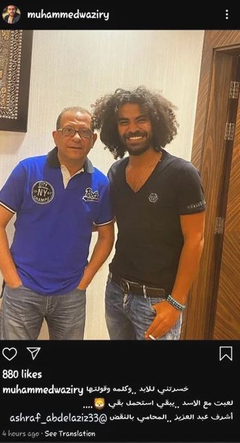 وتصاعدت حدة الخلاف بين الطرفين، بعدما نشر محمد وزيري، مدير أعمال الفنانة السابق، صورة مع محاميه أشرف عبد العزيز من خلال حسابه الرسمي على "إنستغرام"، وكتب عليها: "خسرتني للأبد وكلمة وقلتها لعبت مع الأسد يبقى استحمل بقى مع أشرف عبد العزيز المحامي بالنقض".