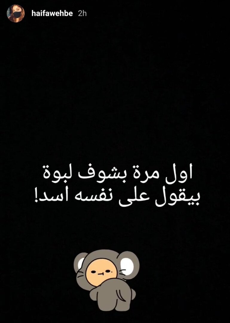 من جهتها، ردت هيفاء وهبي، بشكل غير مباشر، قائلة "أول مرة بشوف .... بيقول على نفسه أسد"، مستخدمة لفظا خادشا للحياء في التعليق.