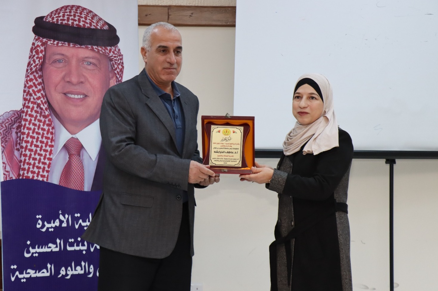 تحت رعاية رئيس جامعة الحسين بن طلال الأستاذ الدكتور عاطف الخرابشة، أقيم اليوم وعلى مدرج كلية الأميرة عائشة بنت الحسين للتمريض والعلوم الصحية، حفل أداء القسم القانوني لطلبة قسم التمريض المتوقع تخرجهم، وبحضور عميدة الكلية الأستاذة الدكتورة حنان صالح، وعميد شؤون الطلبة الدكتور أحمد المحتسب.وفي كلمته هنأ رئيس جامعة الحسين بن طلال الأستاذ الدكتور عاطف الخرابشة طلبة القسم على تخرجهم وتفوقهم، موجهاً إليهم رسالة حمل الأمانة والعمل بجد وإخلاص وتفاني، وأنهم الأيدي الحانية على من يطلب الشفاء وهم الجنود الأوفياء لمهنتهم والتي أثبتت الأيام والمواقف الحاجة لخدماتهم الجليلة الهامة، مضيفاً أن جائحة كورونا وما يحدث الآن من عدوان على الأشقاء في فلسطين لهو الدليل على أن الكوادر الطبية تأتي في أولى خطوط المواجهة، موجهاً التحية والتقدير لكوادر المستشفى الأردني الهاشمي في غزة والضفة على ما يبذلوه من جهد للتخفيف من مصاب أهلنا في فلسطين.كما شكر الدكتور الخرابشة في كلمته الأستاذة الدكتورة حنان صالح عميدة الكلية على خدماتها الكبيرة خلال فترة توليها عمادة الكلية، وجهودها بالارتقاء بالعملية التعليمية خلال مدة تكليفها، كما شكر كادر كلية التمريض التدريسي والإداري على جهودهم في تذليل كافة العقبات أمام أبناءنا الطلبة خلال مسيرتهم التعليمية. وفي كلمتها شكرت عميدة كلية الأميرة عائشة بنت الحسين للعلوم الصحية رئيس الجامعة على دعمه المتواصل للكلية طيلة الفترات الماضية، والذي بدوره أدى إلى الارتقاء بالكلية ومخرجاتها.كما هنأت الدكتورة صالح في كلمتها الطلبة الخريجين، وأنهم بالعلم الذي تلقوه في الكلية على مدار أيام دراستهم سيكونون مؤهلين وعلى قدر عالٍ من العلم والمعرفة، كما دعت الطلبة ليكونوا خير سفراء لجامعتهم وأن يحملوا اسم كليتهم بأمانة واقتدار. وفي نهاية الحفل قدّم رئيس الجامعة الدكتور الخرابشة درع شكر وعرفان للدكتورة حنان صالح على جهودها خلال فترة توليها عمادة الكلية، كما اشتمل الحفل على كلمة ألقاها الطالب محمد احسان فريج، وتسليم الدروع لمستحقيها من رؤساء الأقسام وأعضاء هيئة التدريس المختلفة في الكلية.