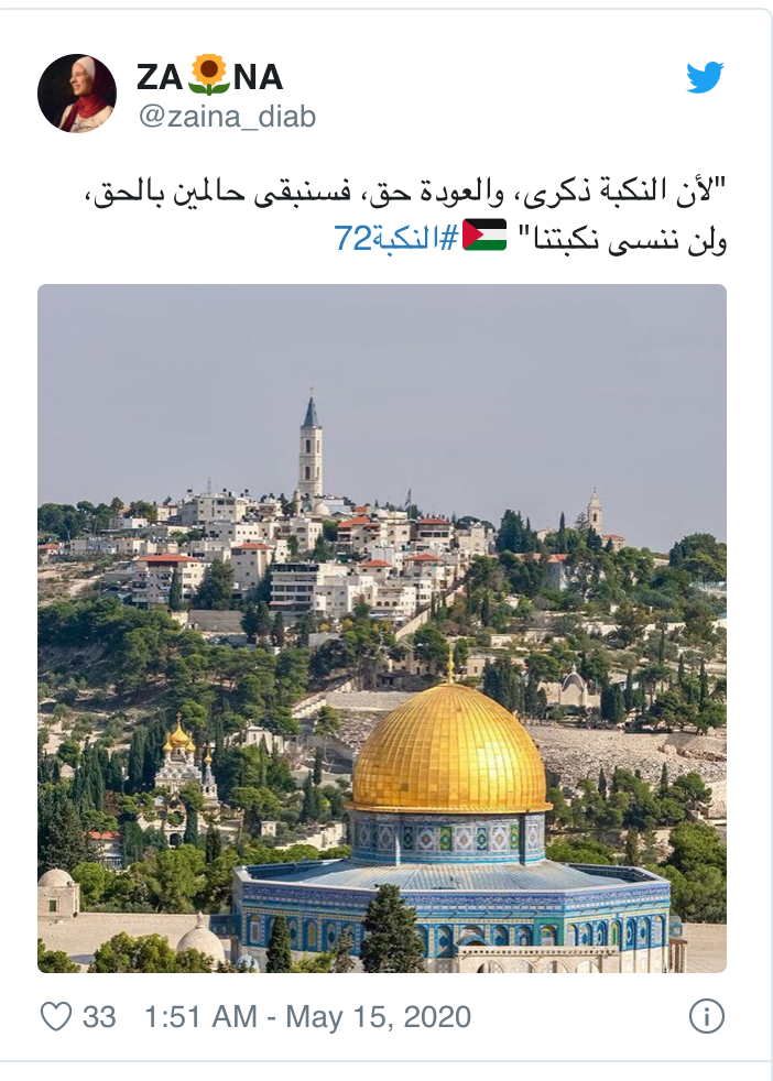 ويأتي الوسم في الذكرى 72 لاحتلال فلسطين، إذ أطلق الفلسطينيون على ذاك العام اسم "النكبة"، تعبيراً عن ضياع الأرض بعد المجازر المُرتكبة بحقهم التي دفعتهم إلى الهجرة نحو الضفة الغربية وقطاع غزة ودول الشتات.