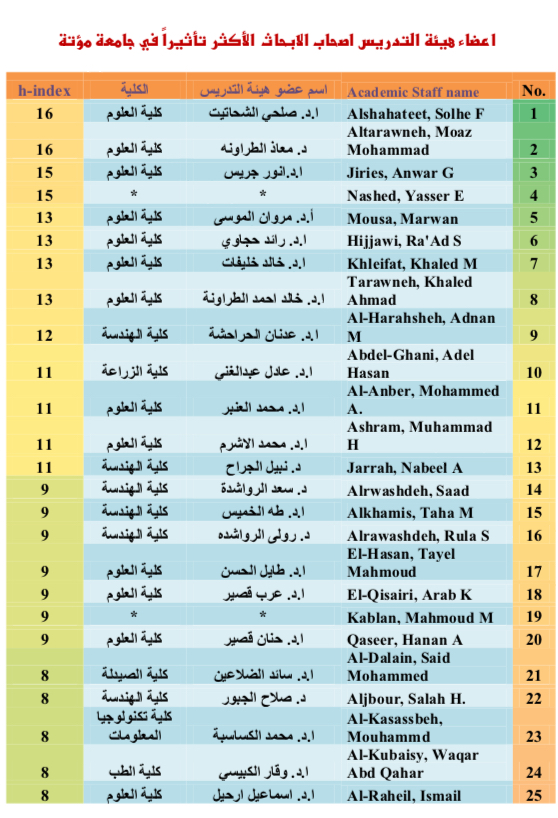البروفيسور الشحاتيت الباحث الأكثر تأثيرا بجامعة مؤتة