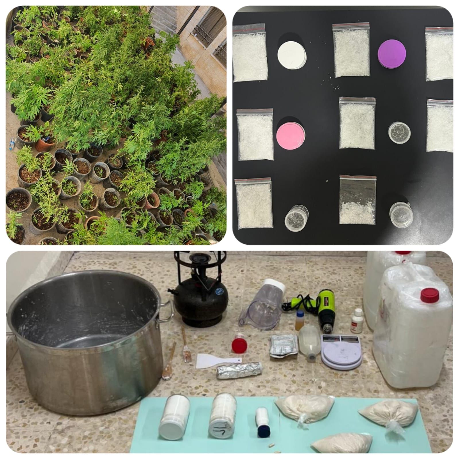 تفكيك شبكة جرمية لترويج المخدرات في إربد، وإلقاء القبض على أفرادها كافّة ، وضبط شخصين صنّعا مادة الكريستال القاتلة في قضية أخرى