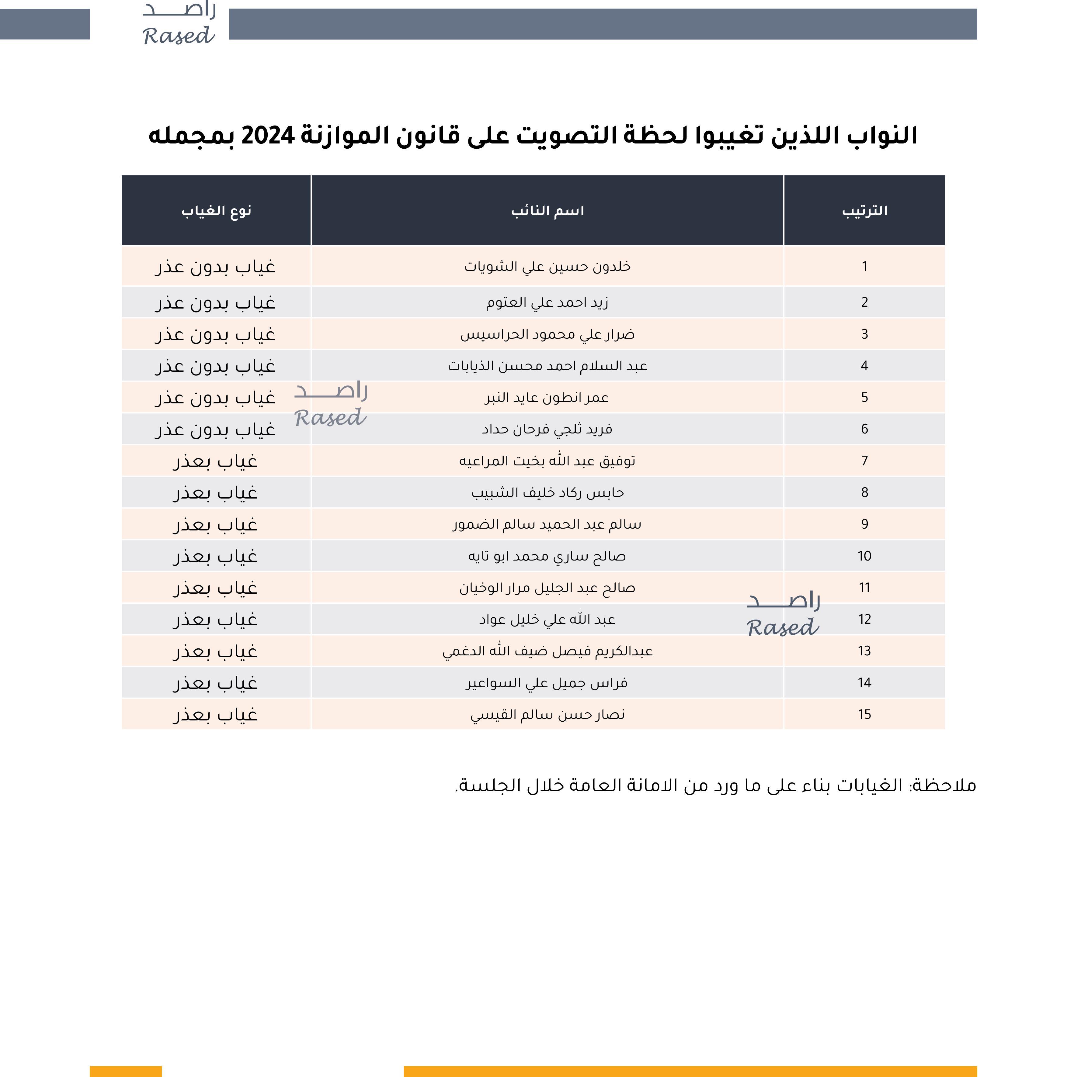 راصد: 15 برلمانياً من أصل 129 تغيبوا عند لحظة التصويت على القانون بمجمله.