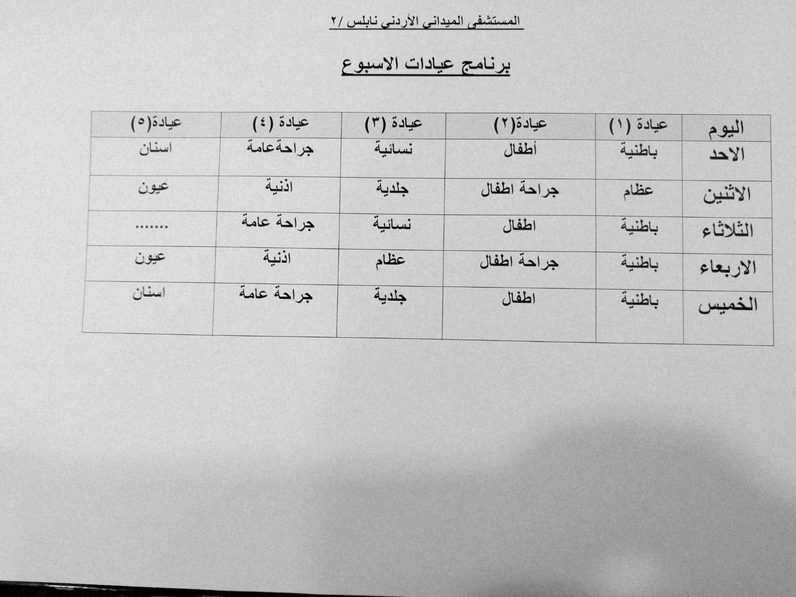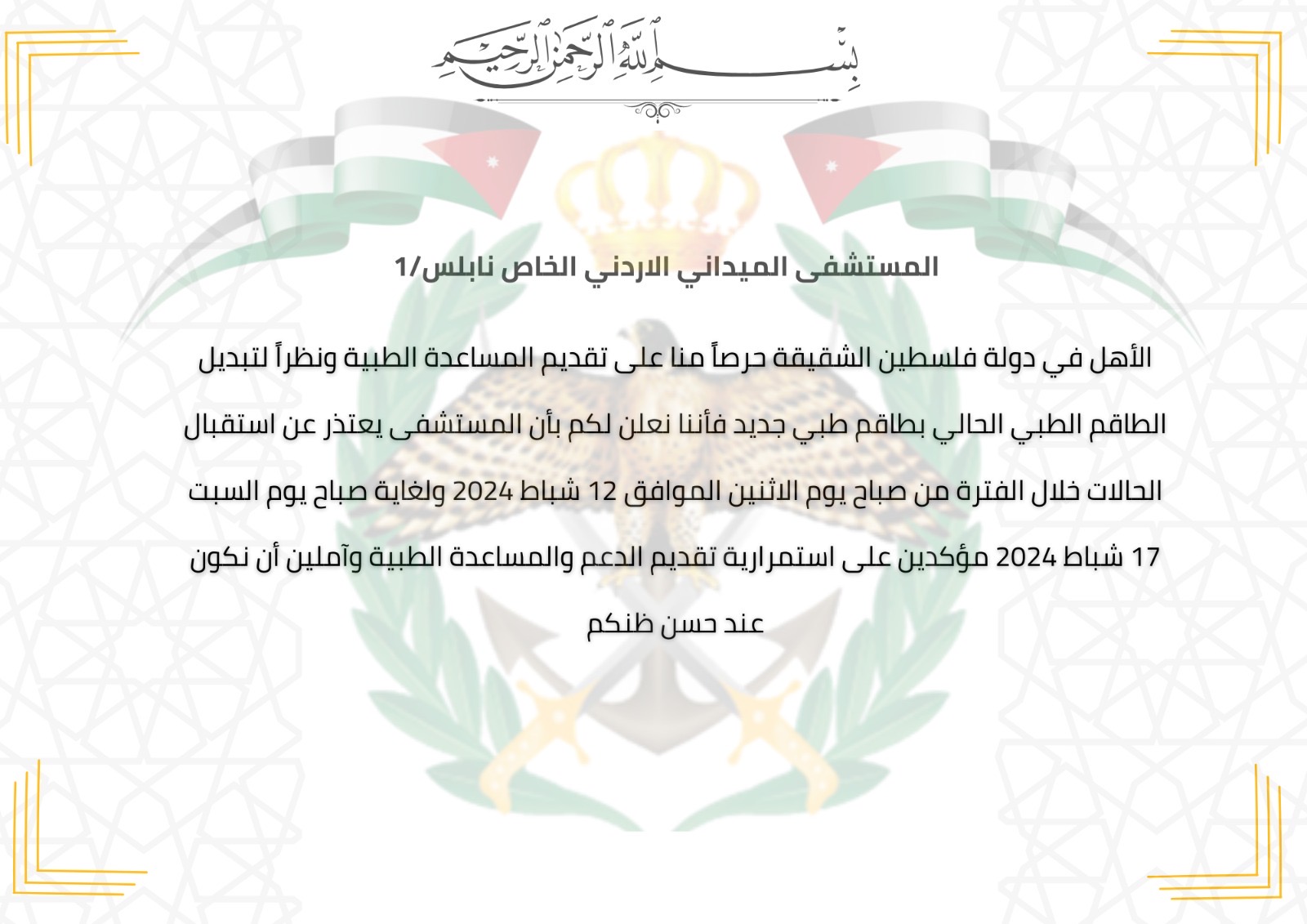 اعلان صادر عن المستشفى الميداني الاردني / نابلس