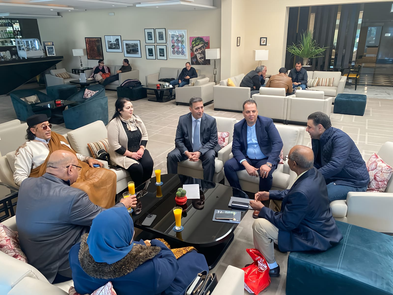 ٠غادرا اليوم الخميس سعادة النائب محمد جرادات والدكتور منذر جرادات المختص في ( الإعلام والفكر السياسي ) أرض الوطن متوجهان إلى الجمهورية التونسية للمشاركة بمؤتمر ( الإستقرار السياسي في ليبيا رؤية استشرافية لمستقبل الأجيال القادمة ) . وبدعوة خاصة من المركز الدولي للدراسات الإستراتيجية بشراكة مع مؤسسة شمال إفريقيا لرعاية الشباب والتنمية والمنظمة الليبية الدولية للتنمية وحقوق الإنسان للحديث عن الاستقرار السياسي والبعد الأمني و الإعلامي لا سيما في ظل الظروف الراهنه والمتغيرات الإقليمية وحاجة المجتمعات الى الاستقرار السياسي .وقد تولى موظف السفارة السيد سفيان الفواز بتوجيه من معالي السفير د ترتيب اجراءات وتسهيل عمل المشاركين في المؤتمر .