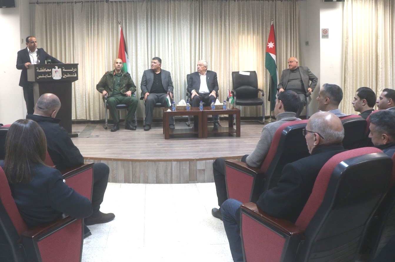 وجاء ذلك في مقر محافظة نابلس، بحضور نائب حركة فتح محمود العالول، ورئيس البلدية سامي الحجاوي، وقائد قوة المستشفى الميداني الأردني نابلس/1 العقيد الركن رائد الجبور، ومدراء الاجهزة الأمنية الفلسطينية وأعضاء المجلسين التنفيذي والاستشاري لمحافظة نابلس، وممثلين عن الفعاليات الشعبية والوطنية في المحافظة.