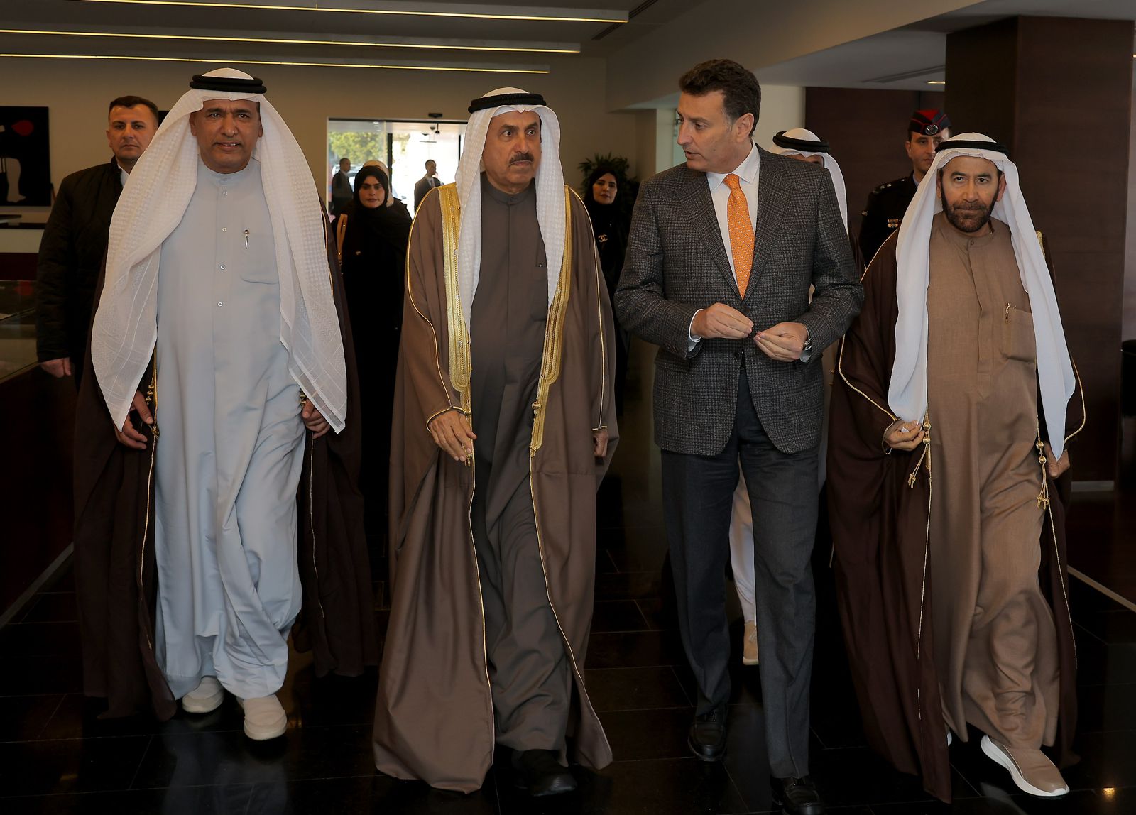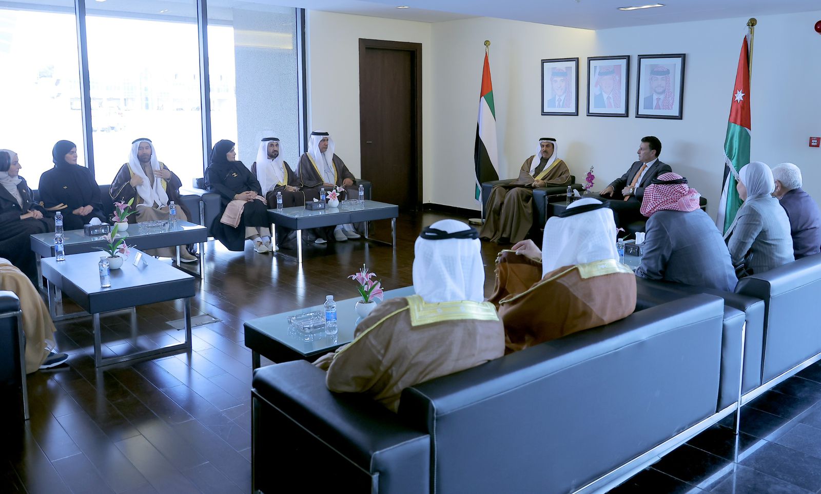 وكان في استقبال الوفد الإماراتي الشقيق: النائب الأول لرئيس مجلس النواب عبد الرحيم المعايعة، ومساعد رئيس مجلس النواب ميادة شريم، ورئيس لجنة الأخوة البرلمانية الأردنية الإماراتية النائب غازي الذنيبات.