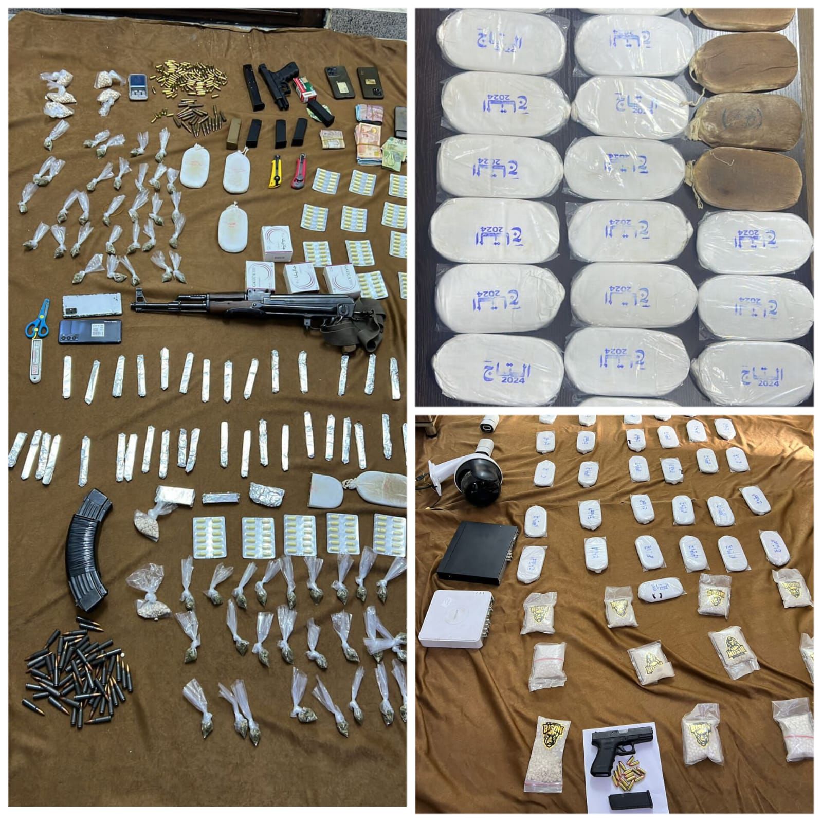 فيما أثمرت الجهود الاستخبارية وجمع المعلومات عن تحديد شبكة جرمية أخرى امتهنت ترويج المخدرات وسط العاصمة واتخذت أحد المنازل في منطقة جبل التاج لتخزين وبيع المخدرات وجرت مداهمة المنزل وأُلقي القبض على خمسة أشخاص داخله وضُبط بحوزتهم 17 كف حشيش و 1000 حبة مخدرة وكمية من الكريستال وسلاحان ناريان .