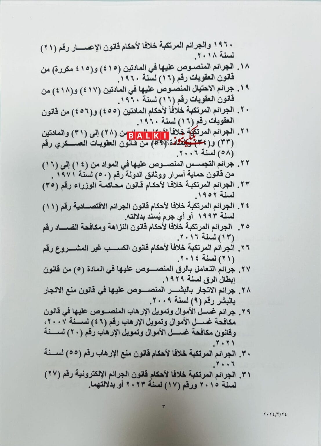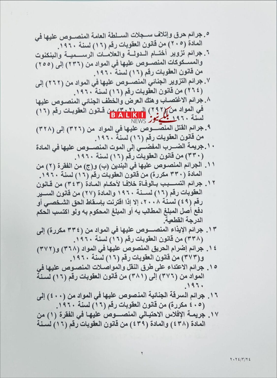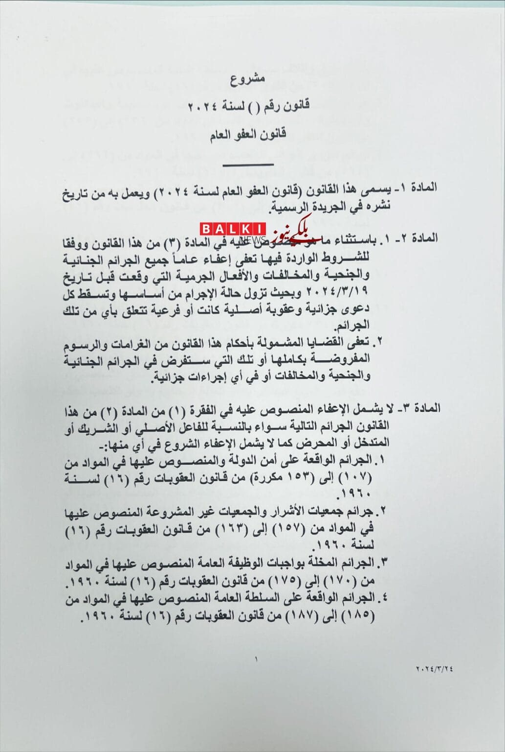 بلكي نيوز تنشر تفاصيل مشروع قانون العفو العام بالكامل- تفاصيل