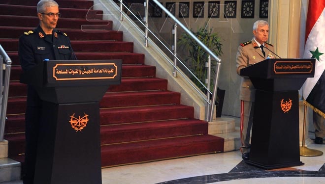 وكان اللواء باقري وصل إلى دمشق أمس على رأس وفد عسكري رفيع المستوى في زيارة رسمية بدعوة من العماد أيوب وكان في استقبال الوفد الضيف في مبنى رئاسة الأركان العامة عدد من كبار ضباط القيادة العامة.