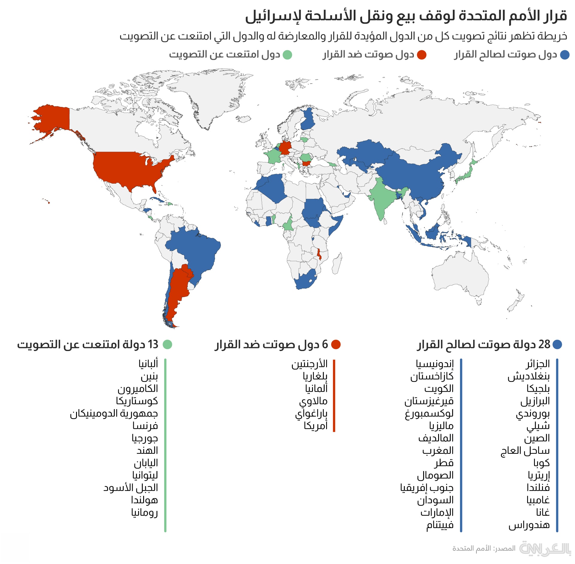 نعرض لكم في الإنفوغرافيك نظرة على نتائج التصويت لقرار وقف بيع وتحويل الأسلحة لإسرائيل.