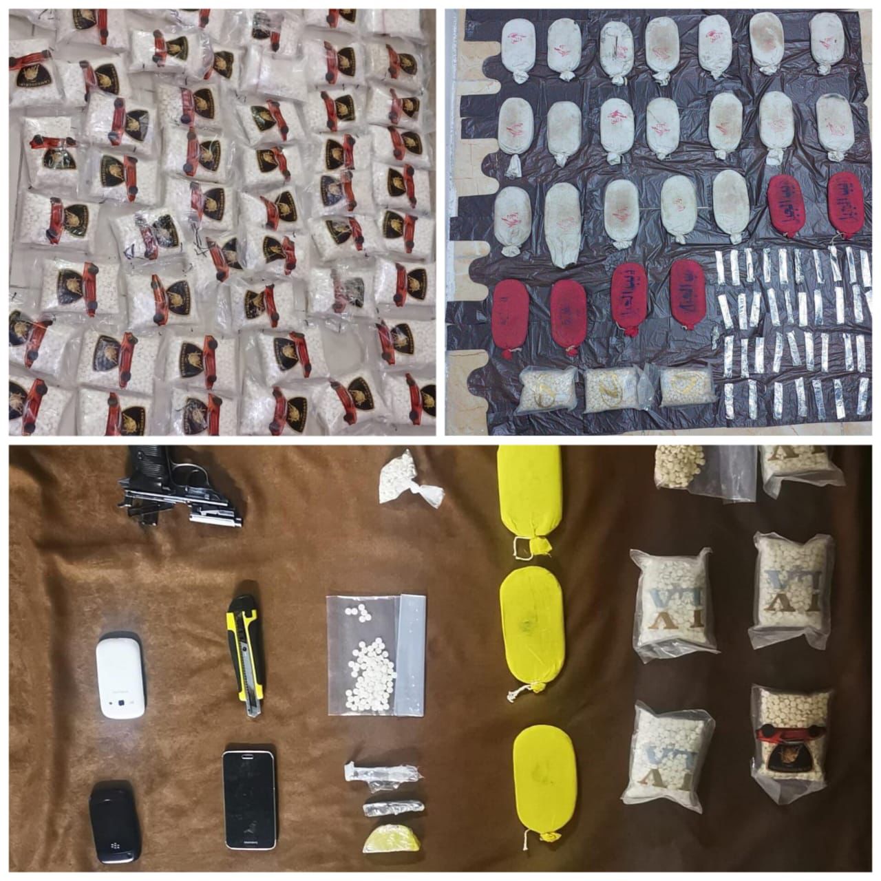 كما ونفّذت حملة أخرى على مروجي المخدرات جنوب العاصمة، إذ تم التعامل مع قضيتين أُلقي القبض في الأولى على مروج بحوزته 8000 حبة مخدرة و 5 كفوف حشيش ، كما وأُلقي القبض في القضية الثانية على مروج آخر وضبط بحوزته 1250 حبة مخدرة و 5 كفوف حشيش .