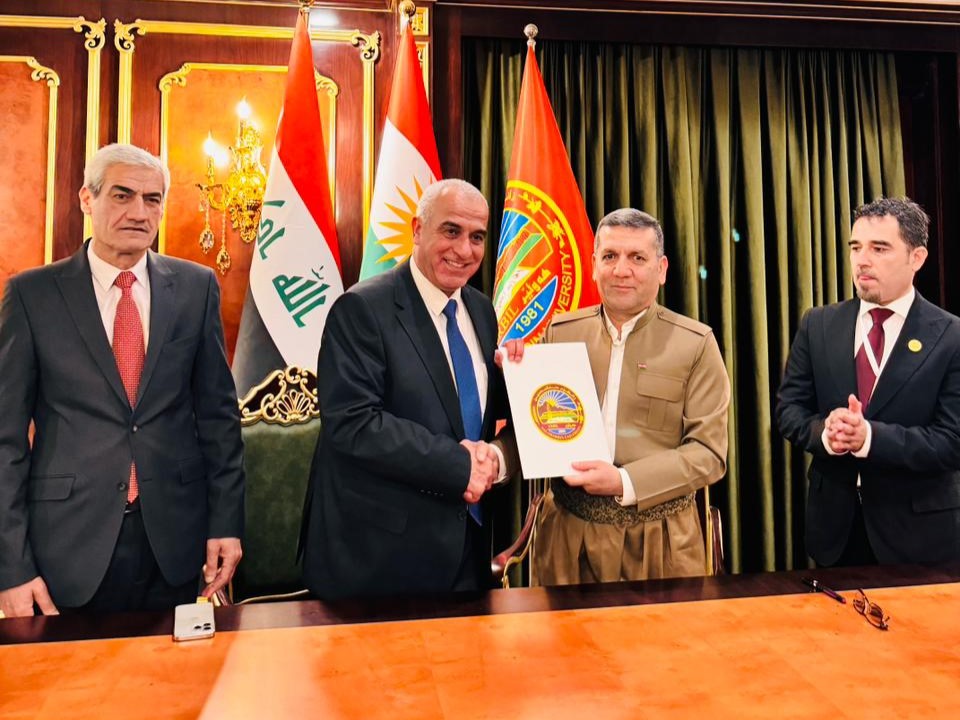 من جهته رحّب رئيس جامعة صلاح الدين – أربيل كردستان العراق الأستاذ الدكتور كمران يونس برئيس جامعة الحسين بن طلال والوفد المرافق، مبيناً أن جامعة صلاح الدين تتطلع إلى توثيق علاقاتها وشراكاتها وتبادل الخبرات مع جامعة الحسين وعلى جميع المستويات، آملاً أن تكون هذه الاتفاقية انطلاقة لعلاقات قوية ومتينة بين الجامعتين.