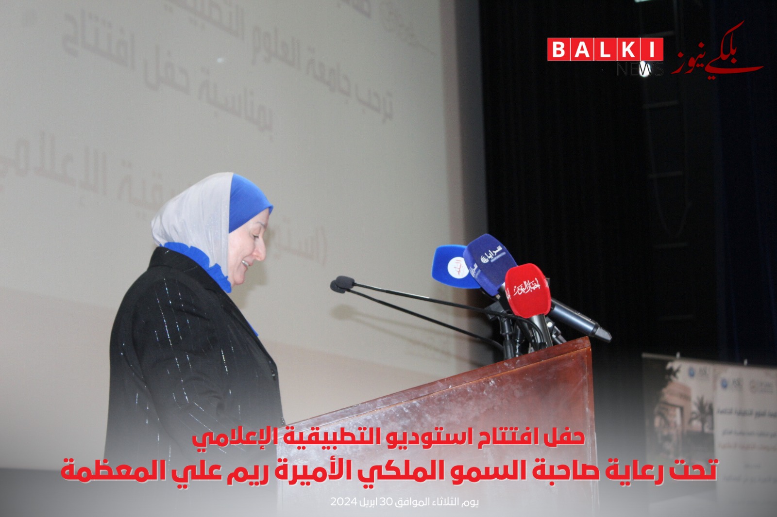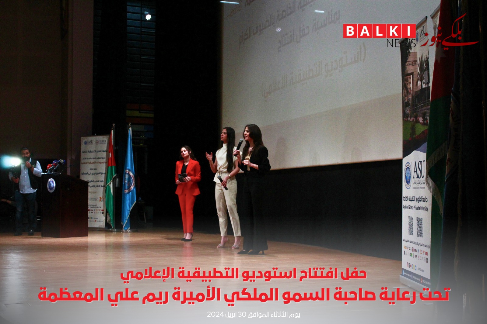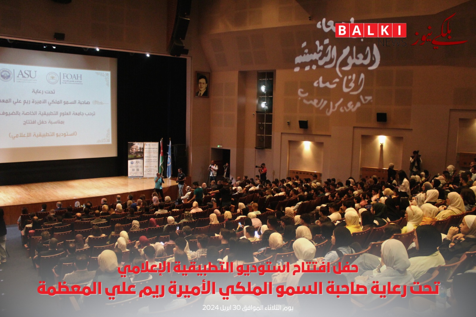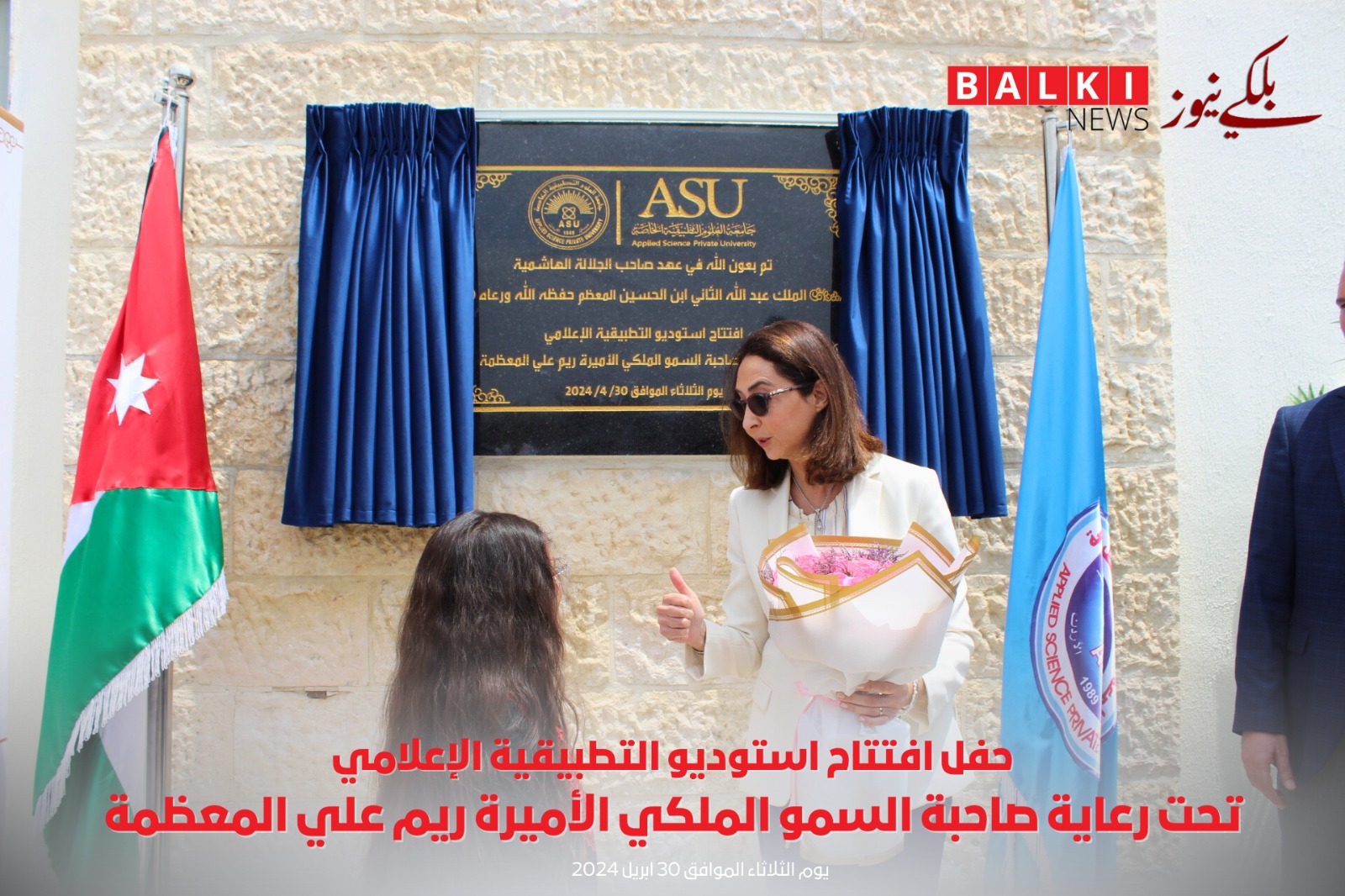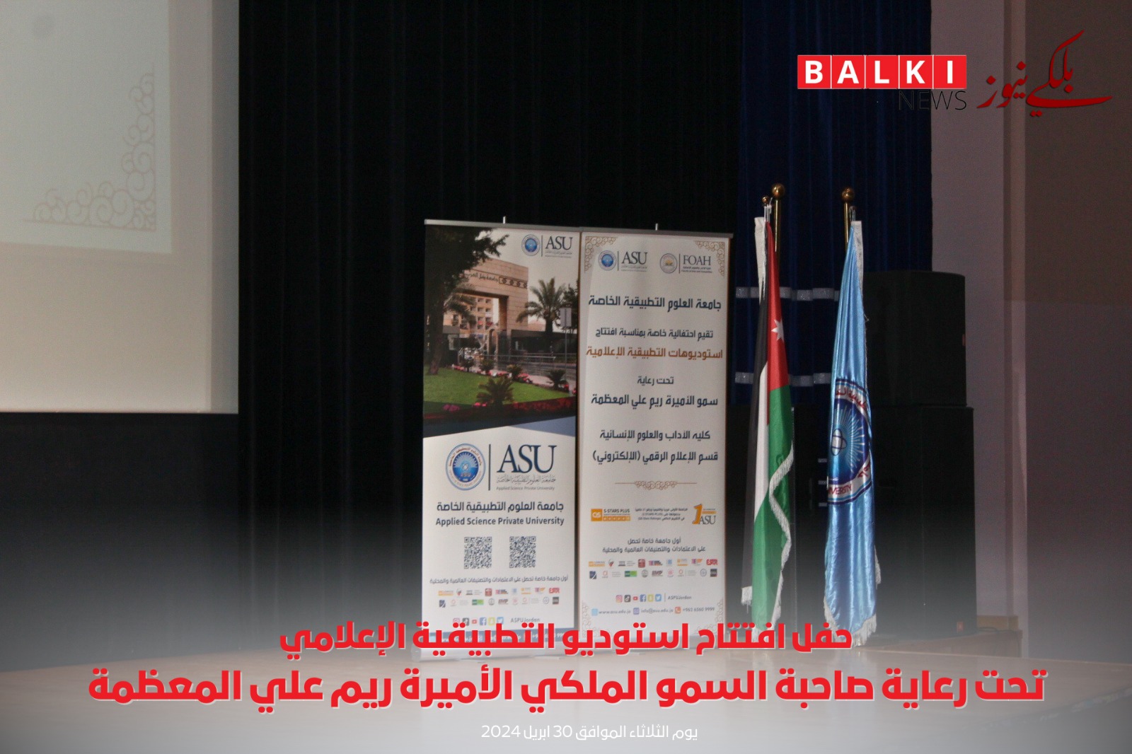 برعاية ملكية كريمة من صاحبة السمو الملكي الأميرة ريم علي تم افتتاح استوديو التطبيقية الإعلامي في جامعة العلوم التطبيقية الخاصة وبحضور رئيس مجلس الأمناء الدكتور هيثم عبدالله أبو خديجة وعدد كبير من الحضور لأصحاب المعالي والسعادة ومن مؤسسات إعلامية أردنية وإعلاميين وصحفيين بارزين وأعضاء الهيئة التدريسية في الجامعة.