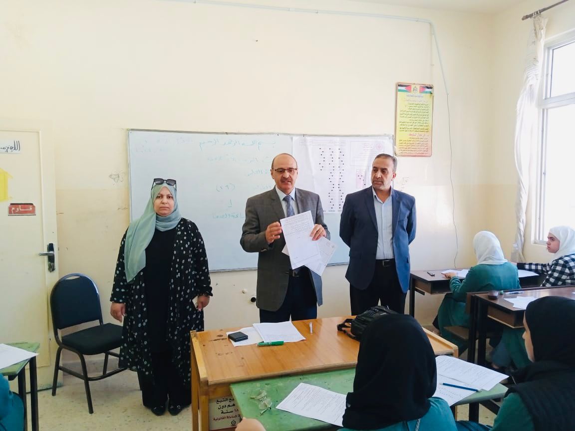 تفقد مدير التربية والتعليم لمنطقة الكرك الاستاذ سامر المجالي يرافقة مدير الشؤون التعليمية الاستاذ نضال الفتينات سير الاختبارات التجريبية لطلبة الثانوية العامة "التوجيهي" ، في مدرسة المنشية الثانوية للبنات ومدرسة المنشية الثانوية للبنين .