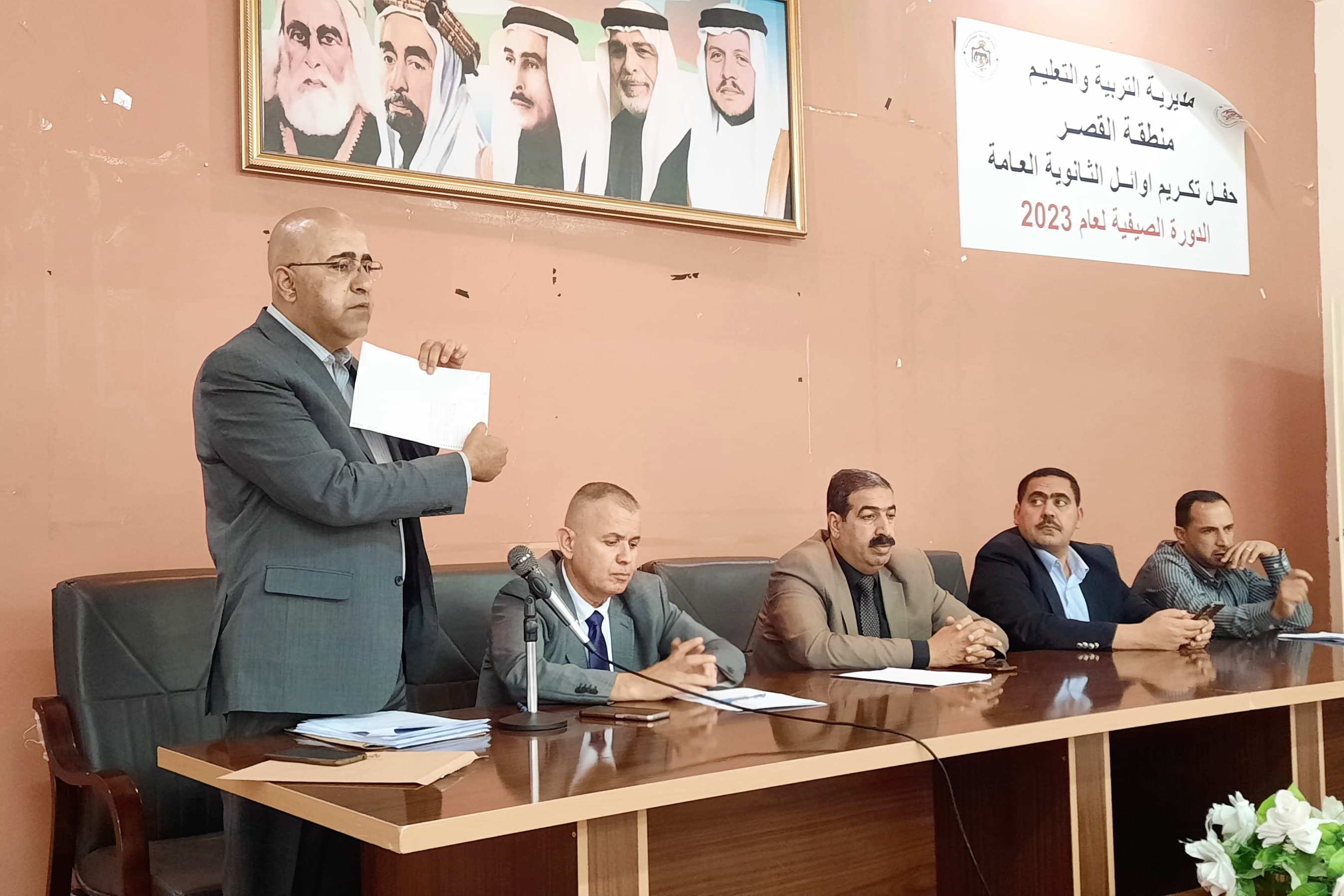 عقد مدير التربية والتعليم لمنطقة القصر الدكتور علي الفقرا اجتماعا لمدراء المدارس الاساسية في المنطقة من أجل مناقشة الاختبار الوطني للصف الرابع الاساسي في مدرسة عبدالوهاب المجالي الثانوية للبنين.