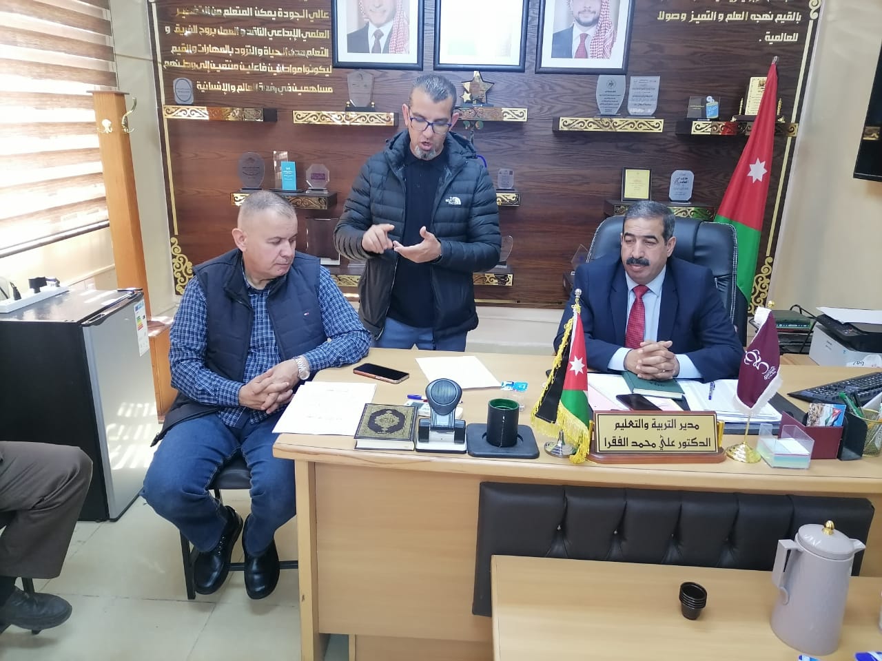 ترأس مدير التربية والتعليم لمنطقة القصر الدكتور علي الفقرا في مكتبه اليوم اجتماع لجان تحكيم جائزة الملك عبدالله الثاني للياقة البدنية بحضور مدير الشؤون التعليمية الدكتور بكر الذنيبات ومدير الشؤون الادارية والمالية السيد احمد المحادين واعضاء قسم النشاطات مسؤول اللياقة البدنية الدكتور فيصل الحباشنة.