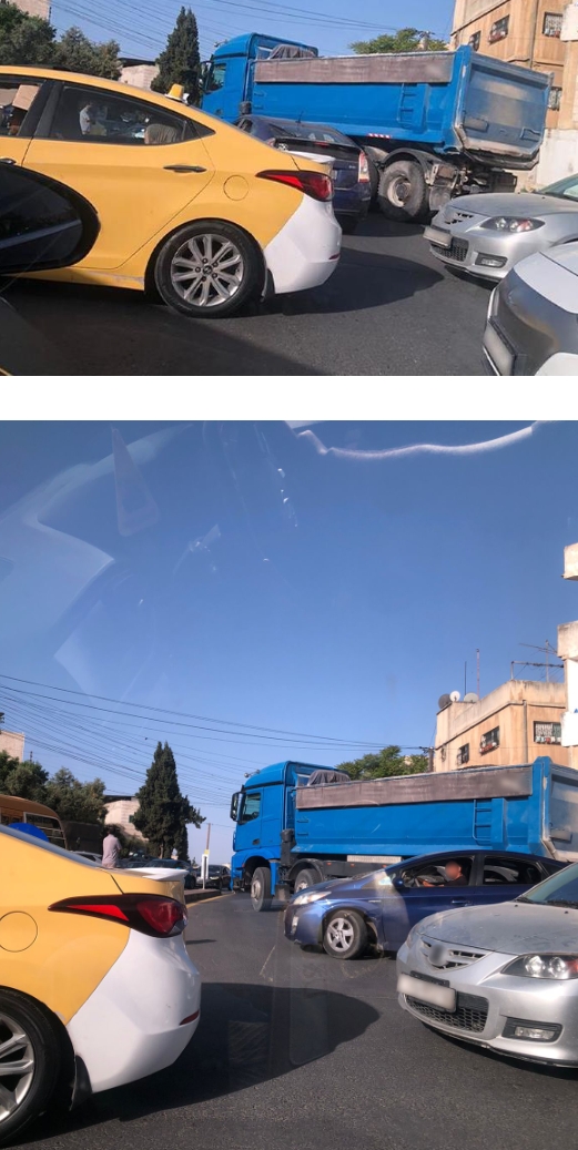 بالصور ... تعطل مركبة شحن يتسبب بكثافة مرورية في صويلح