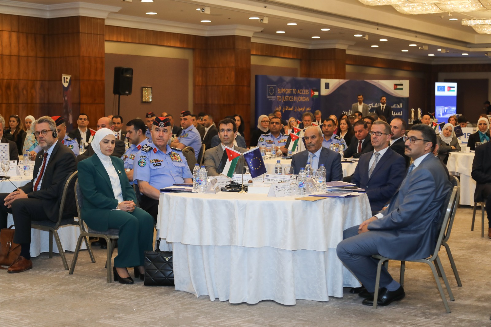وحضر حفل الأطلاق امين عام وزارة العدل للشؤون القضائية القاضي د. سعد اللوزي وامين عام وزارة العدل للشؤون الإدارية والمالية السيدة خلود العبادي ونائب عام عمان القاضي د. حسن العبداللات وامين عام المجلس القضائي القاضي علي المسيمي ومساعد مدير الامن العام للشؤون القضائية وممثليين عن المؤسسة الألمانية للتعاون الدولي ( (GIZ ) والمنظمة الدولية للهجرة (IOM) وعدد من الجهات الشريكة