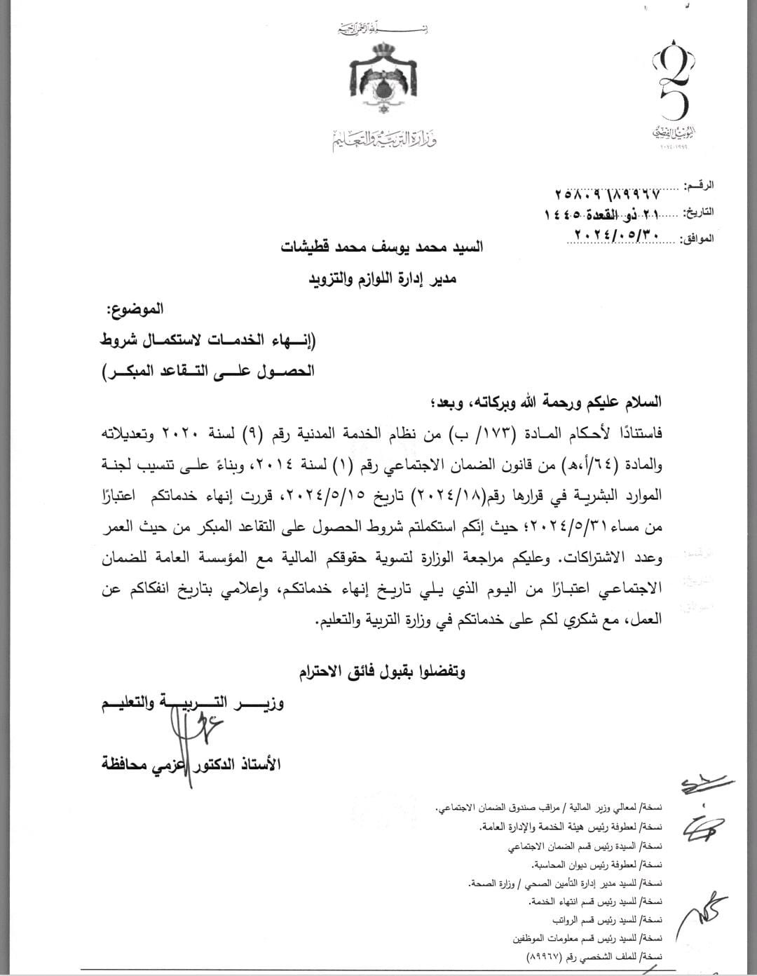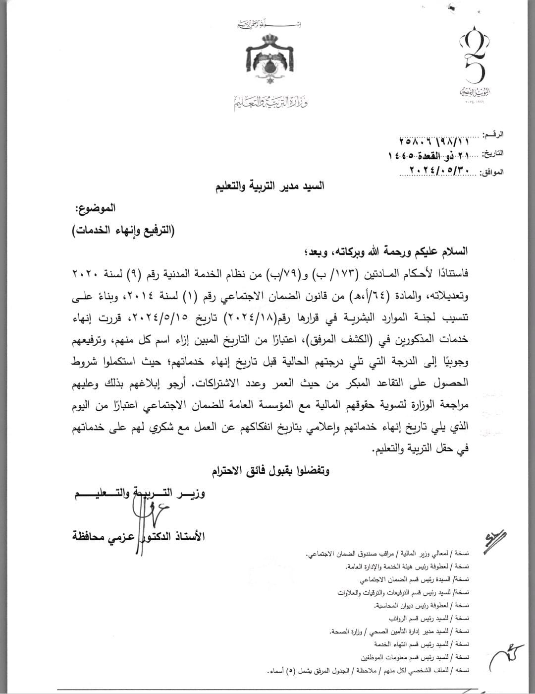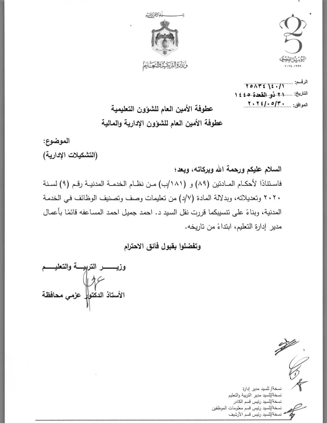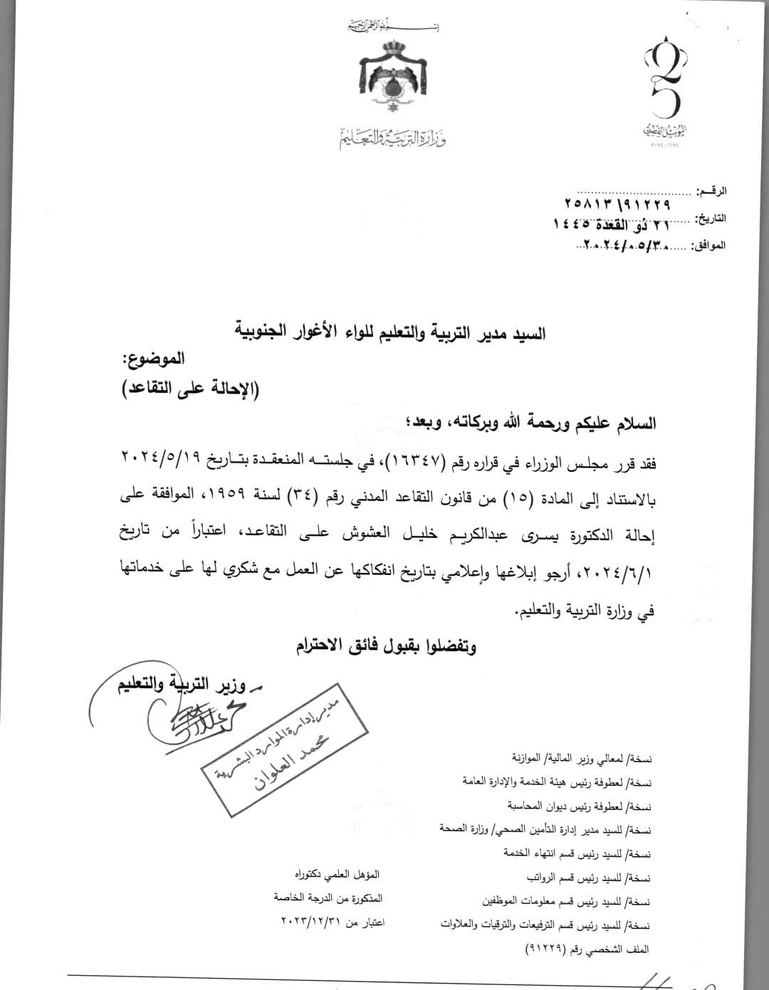 عاجل - تشكيلات إدارية وإحالات على التقاعد في التربية (أسماء)