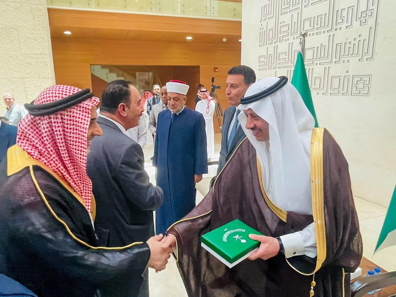 ودع سفير خادم الحرمين الشريفين لدى الأردن نايف بن بندر السديري في السفارة اليوم، قافلة حجاج بيت الله الحرام ضمن برنامج ضيوف خادم الحرمين الشريفين الملك سلمان بن عبدالعزيز آل سعود- حفظه الله-، بحضور معالي وزير الاوقاف الاردني الدكتور محمد الخلايلة، وسعادة رئيس مجلس النواب الاردني أحمد الصفدي.وتمنى السفير السديري لجميع للحجاج رحلة ميسرة عامرة بالإيمان والعودة السالمة إلى وطنهم وذويهم، موضحا ان برنامج ضيوف خادم الحرمين الشريفين الملك للحج للعام الجاري، هو رسالة المملكة واهتمامها المتواصل بخدمة ضيوف الرحمن.وقال السفير السديري ان المملكة العربية السعوية بقيادة خادم الحرمين الشريفين الملك سلمان بن عبدالعزيز ال سعود، وصاحب السمو الملكي الأمير محمد بن سلمان بن عبدالعزيز ولي العهد رئيس مجلس الوزراء -حفظهم الله- تبذل جهود جبارة في خدمة ضيوف الرحمن وتسخر جميع سبل الراحة لخدمتهم.وأكد السفير السديري حرص حكومة المملكة العربية السعودية على تحقيق تطلعات خادم الحرمين الشريفين فيما يخدم الحجاج، ويحقق راحتهم منذ وصولهم إلى أراضي المملكة حتى مغادرتهم ووصولهم إلى بلدهم سالمين مطمئنين.من جانبهم عبر الحجاج عن سعادتهم بهذه البعثة التي سهلت لهم سبل الاستطاعة لأداء ركن الحج العظيم بكل سخاء ورعاية، داعين المولى عز وجل أن يحفظ خادم الحرمين الشريفين ويديم نعمة الأمن والأمان على المملكة العربية السعودية.