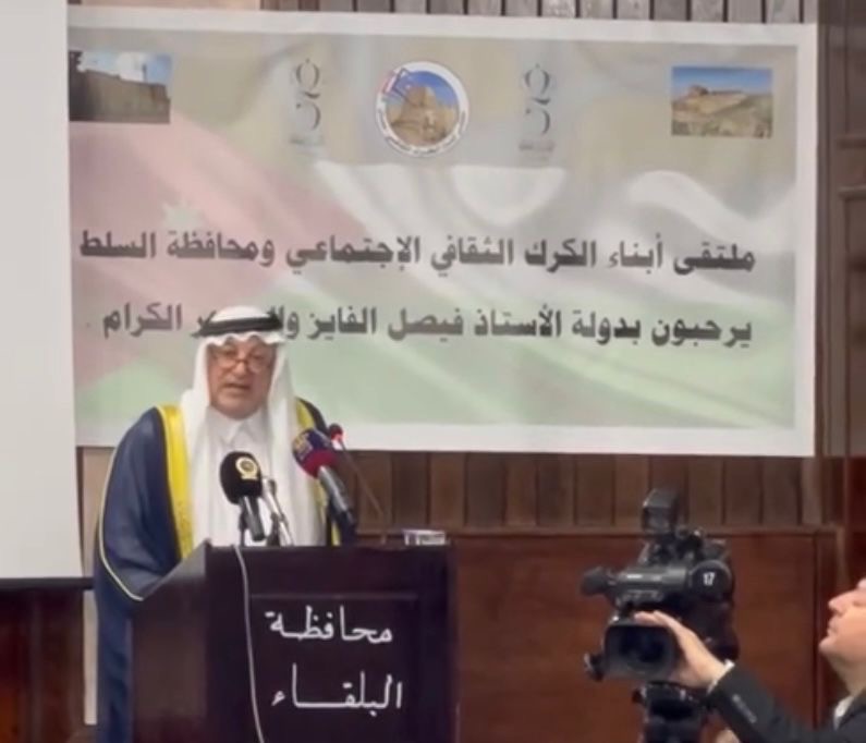 رعى فيصل الفايز رئيس مجلس الأعيان بحضور العين جمال الصرايرة ومحافظ البلقاء فراس ابوقاعود ورئيس ملتقى أبناء الكرك الثقافي العميد المتقاعد هاشم المجالي الاحتفال باليوبيل الفضي للجلوس الملكي على العرش من خلال إعلان التوأمة في التراث السلطي والكركي . وألقى رئيس ملتقى أبناء الكرك كلمة تتحث عن أهمية التراث في تعزيز الولاء والانتماء للوطن والقيادة كما محافظ البلقاء فراس ابوقاعود في كلمته على أهمية العادات والتقاليد والتراث في حياة الشعوب .ثم تم عرض وصلات تراثية وعرض فلكلوري سلطي وكركي ثم اختتم بكلمة من راعي الحفل دولة فيصل الفايز تحدث فيها عن أهمية التراث والتارخ في استحضار الماضي من أجل العمل والبناء للمستقبل .