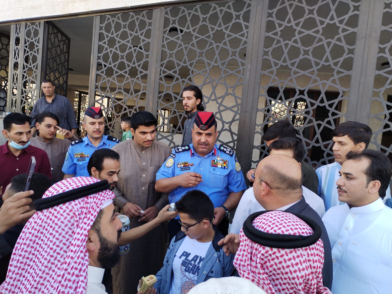 وتضمنت المبادرة التي شارك بها عطوفة مدير شرطة محافظة معان العميد عوض اللبابدة ورئيس قسم السير في مديرية شرطة محافظة معان المقدم سليمان الطراونة ورئيس قسم الشرطة المجتمعية في إقليم الجنوب الرائد محمد الفناطسة ورئيس الفريق السيد هاشم محمد آل خطاب وعضو الهيئة الإدارية في الفريق السيد سعد خالد البزايعة وعدد من أعضاء الفريق بتقديم التهاني للمصلين في مسجد الشريف الحسين بن علي (مسجد معان الكبير) ، وتم توزيع الحلوى والقهوة العربية على الحضور، ما أضفى جوًا من البهجة والسرور في المكان.