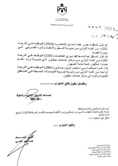 تشكيلات في دائرة ضريبة الدخل والمبيعات(أسماء)
