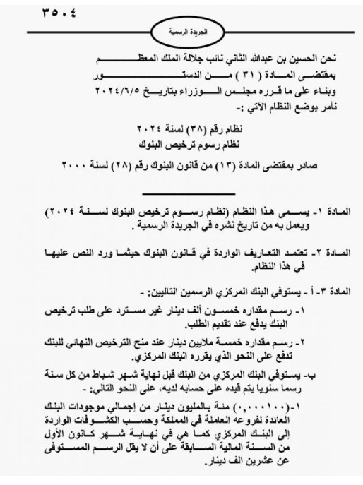 إرادة ملكية بالموافقة على قرار الحكومة بنظام رسوم ترخيص البنوك