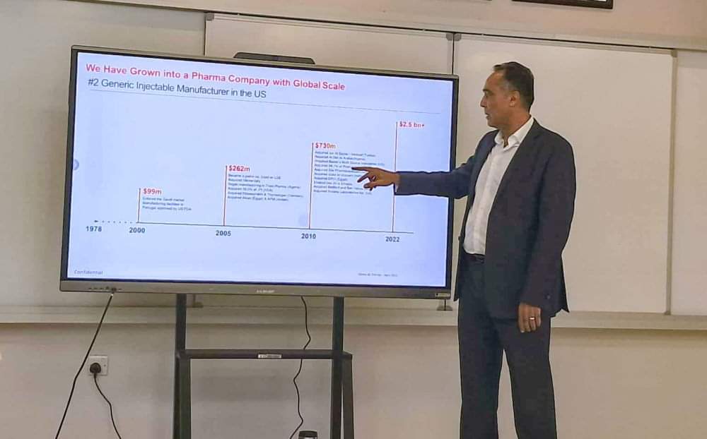 كما استمع الطلبة إلى قصة نجاح تحفيزية في الصناعات الدوائية الأردنية الريادية قدمها المستشار في أدوية الحكمة الدكتور صلاح المواجدة حول ضرورة التفكير المتعدد بعيدا عن الأطر التقليدية والقوالب الجاهزة إذ يمكن لخريج الكليات الصحية التفكير في العمل ضمن مجموعة واسعة من الأعمال والمهن واطلاق المشاريع والشركات الناشئة وعدم تقييد نفسه في إطار التخصص الدقيق، وكذلك بناء الكفايات والمهارات بشكل تراكمي مستمر.