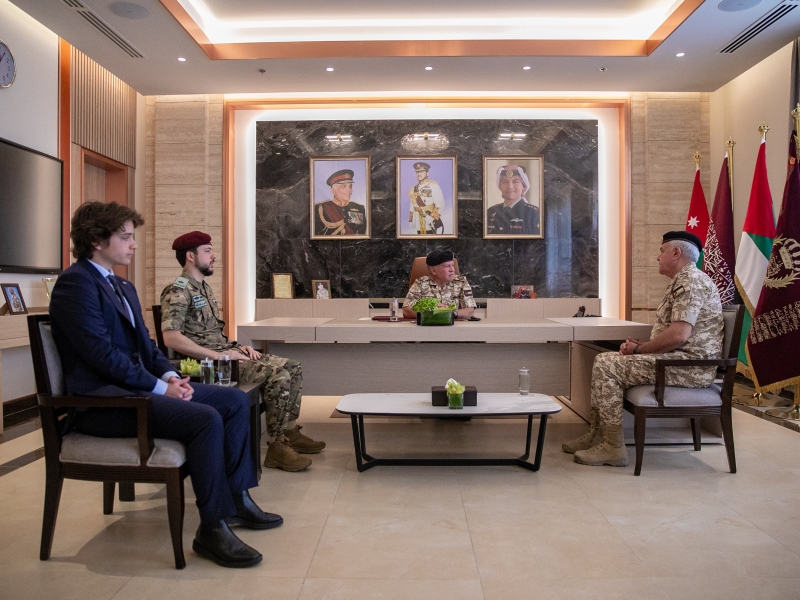 جلالة الملك عبدالله الثاني، القائد الأعلى للقوات المسلحة، يرافقه سمو الأمير الحسين بن عبدالله الثاني، ولي العهد، يزور القيادة العامة للقوات المسلحة الأردنية الجیش العربي