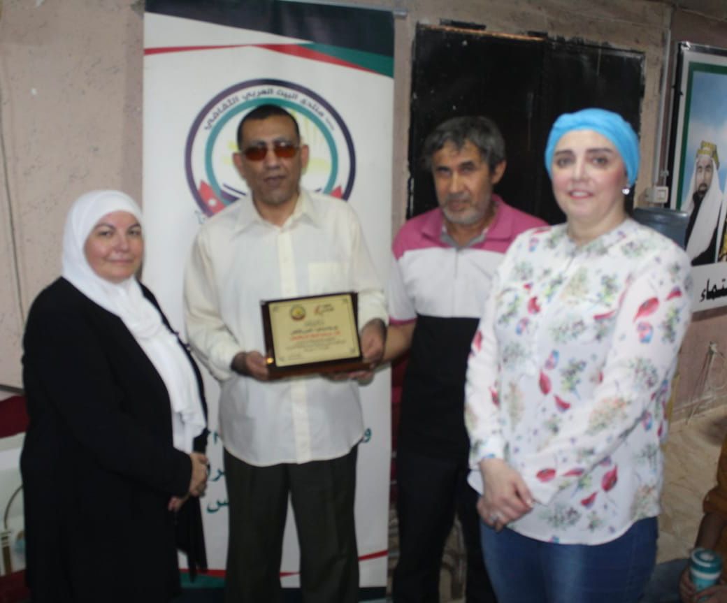 ثم قدمت الأستاذه ميرنا حتقوة بمعية الاديبه عنان محروس درعا تكريميا لرئيس جمعية الرؤى للمكفوفين الأستاذ فايز الغراغير .