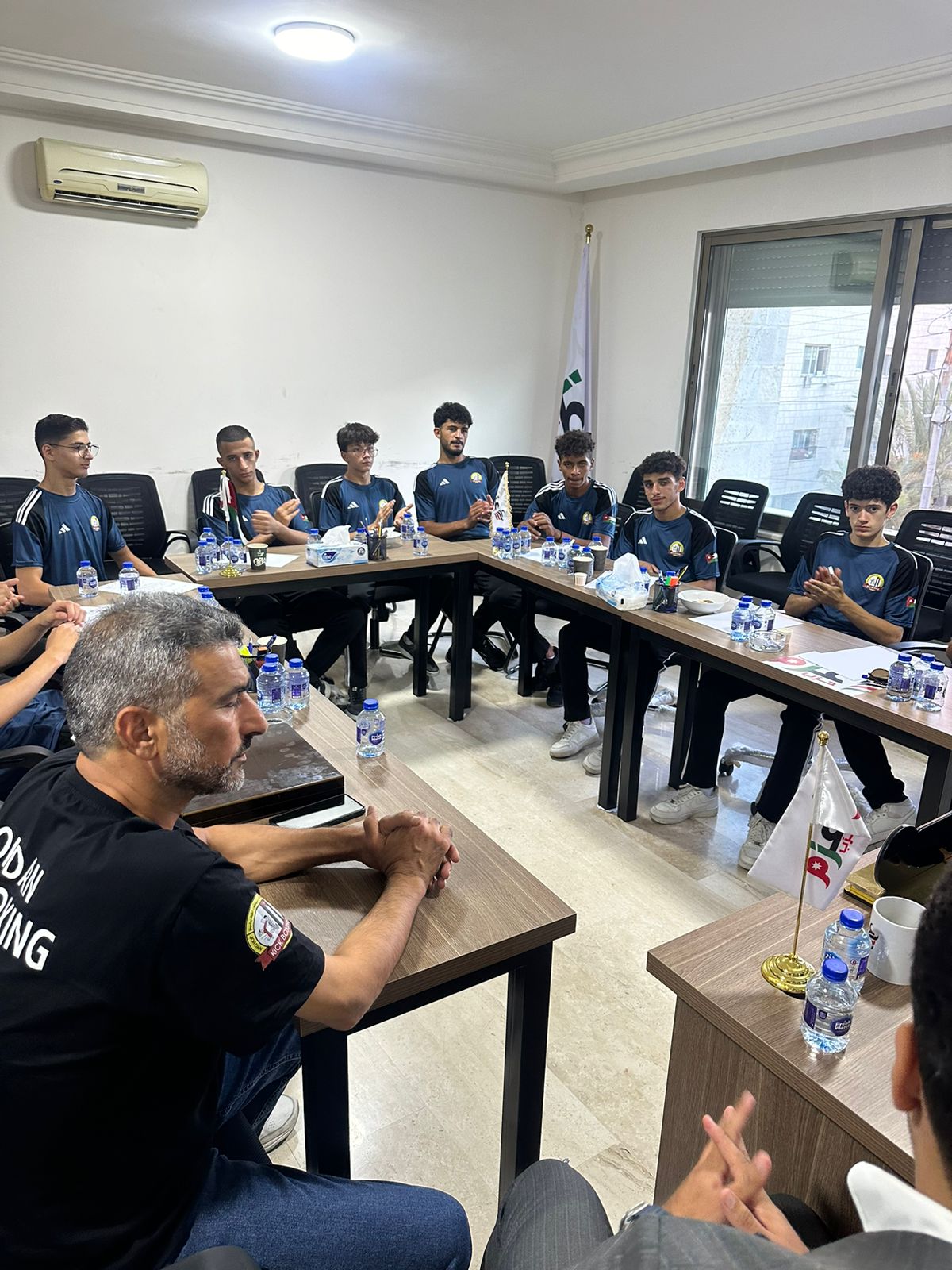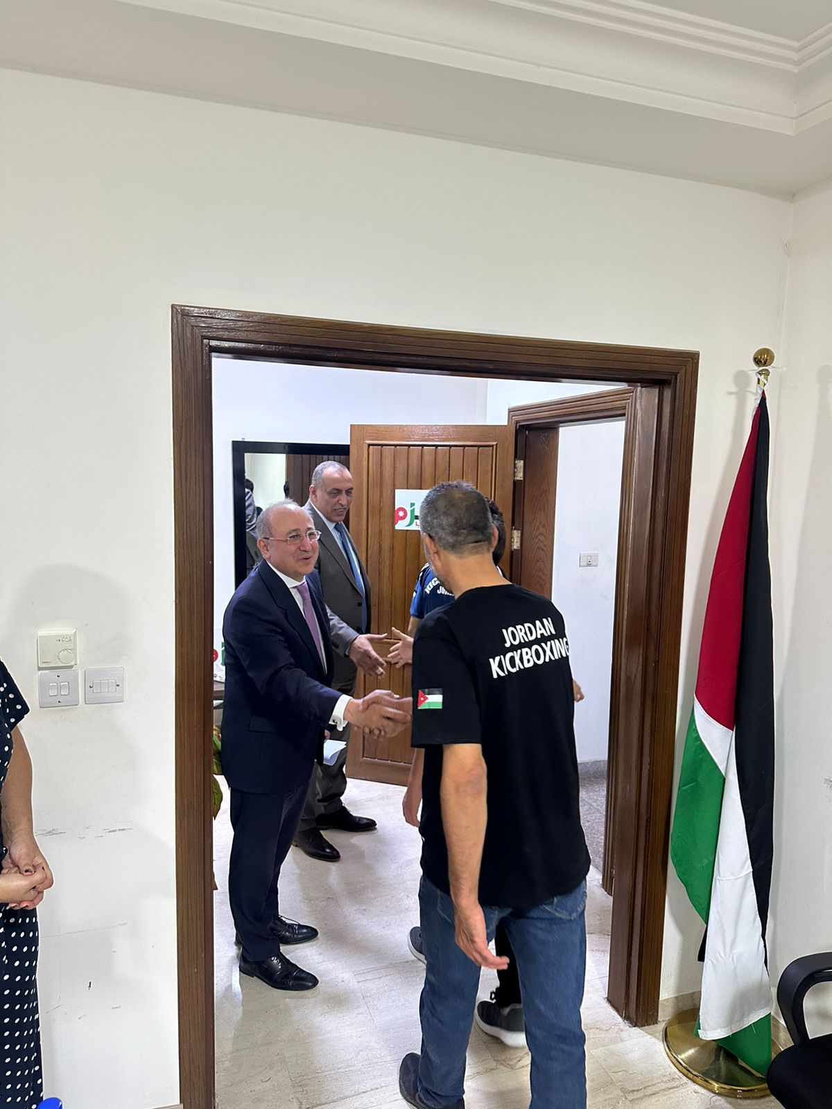 بدوره قام نائب سمو رئيسية الاتحاد الأردني لكرة الطأئرة جهاد قطيشات بشحذ الهمم وتشجيع الشباب على الفوز وتمثيل الأردن احسن تمثيل ورفع اسم الاردن عاليا في المحافل الدولية مؤكدا ان الوفد واللاعبين هم سفراء الاردن والمنارة الشامخة التي تقدم جهودا جبارة لخدمه الوطن مثمنا الدعم الملكي لجلالة الملك عبدالله الثاني لقطاع الرياضة