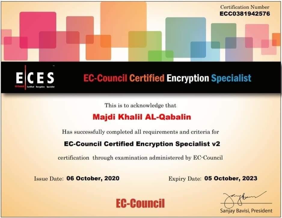 Congratulations for passing the EC-Council Certified Encryption Specialist v2 exam!