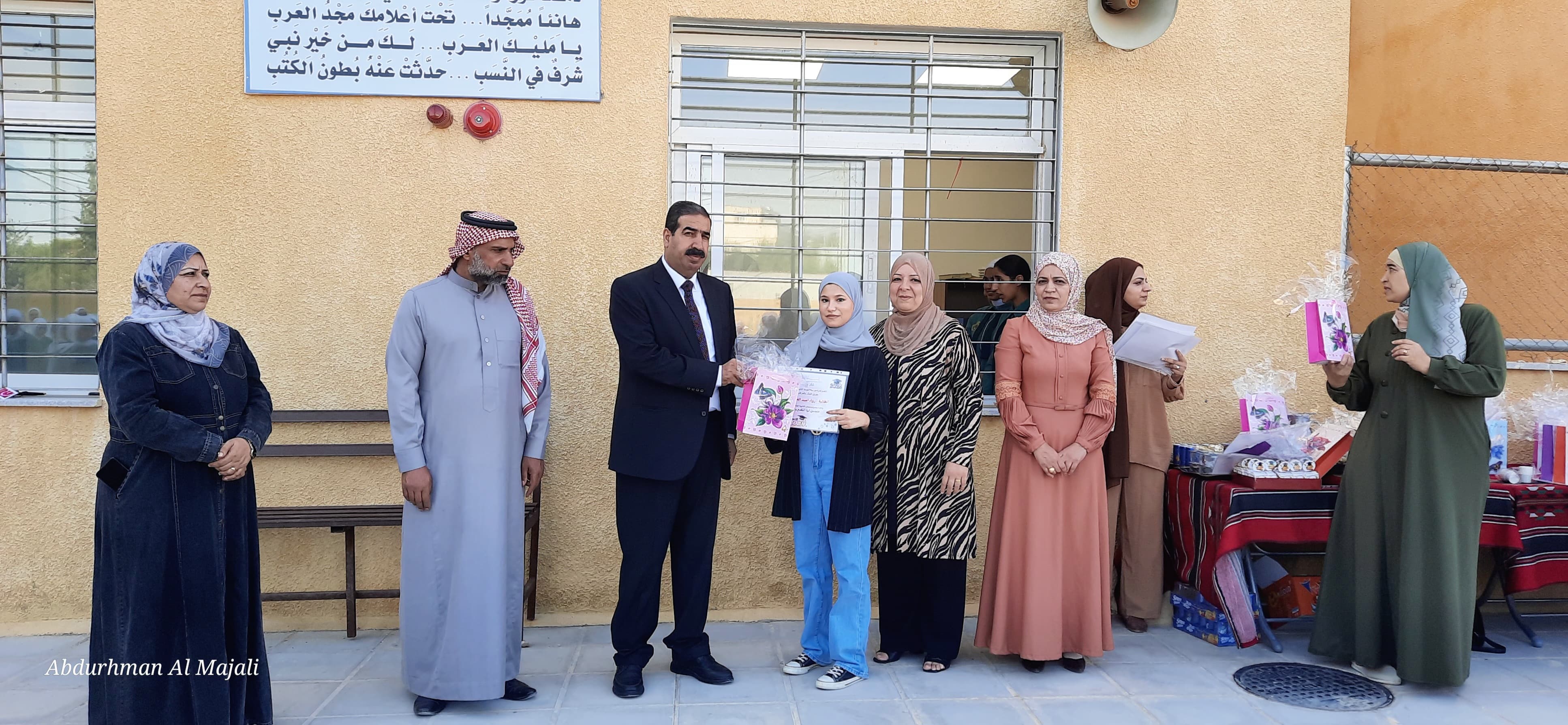 ضمن فعاليات الطابور الصباحي كرم مدير التربية والتعليم لمنطقة القصر الدكتور علي الفقرا اوائل التوجيهي لطالبات مدرسة الجدعا الثانوية للبنات بحضور رئيس شبكة مدارس الجدعا السيد علي المصاروة والمشرفة الادارية لمدارس الجدعا نجود المصاروة والمحرر الصحفي السيد عبد الرحمن المجالي .