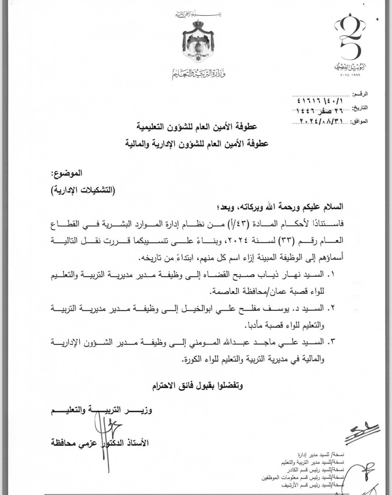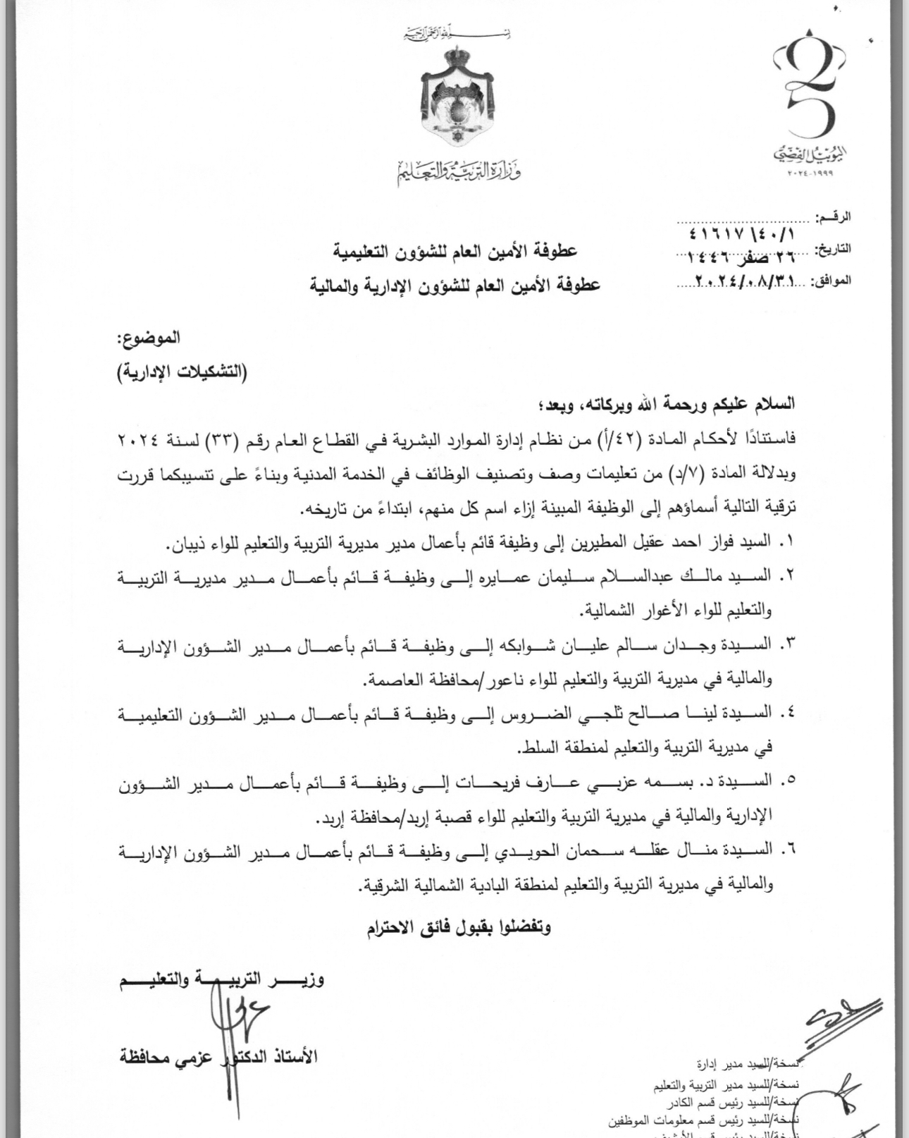 تشكيلات في وزارة التربية والتعليم (أسماء)