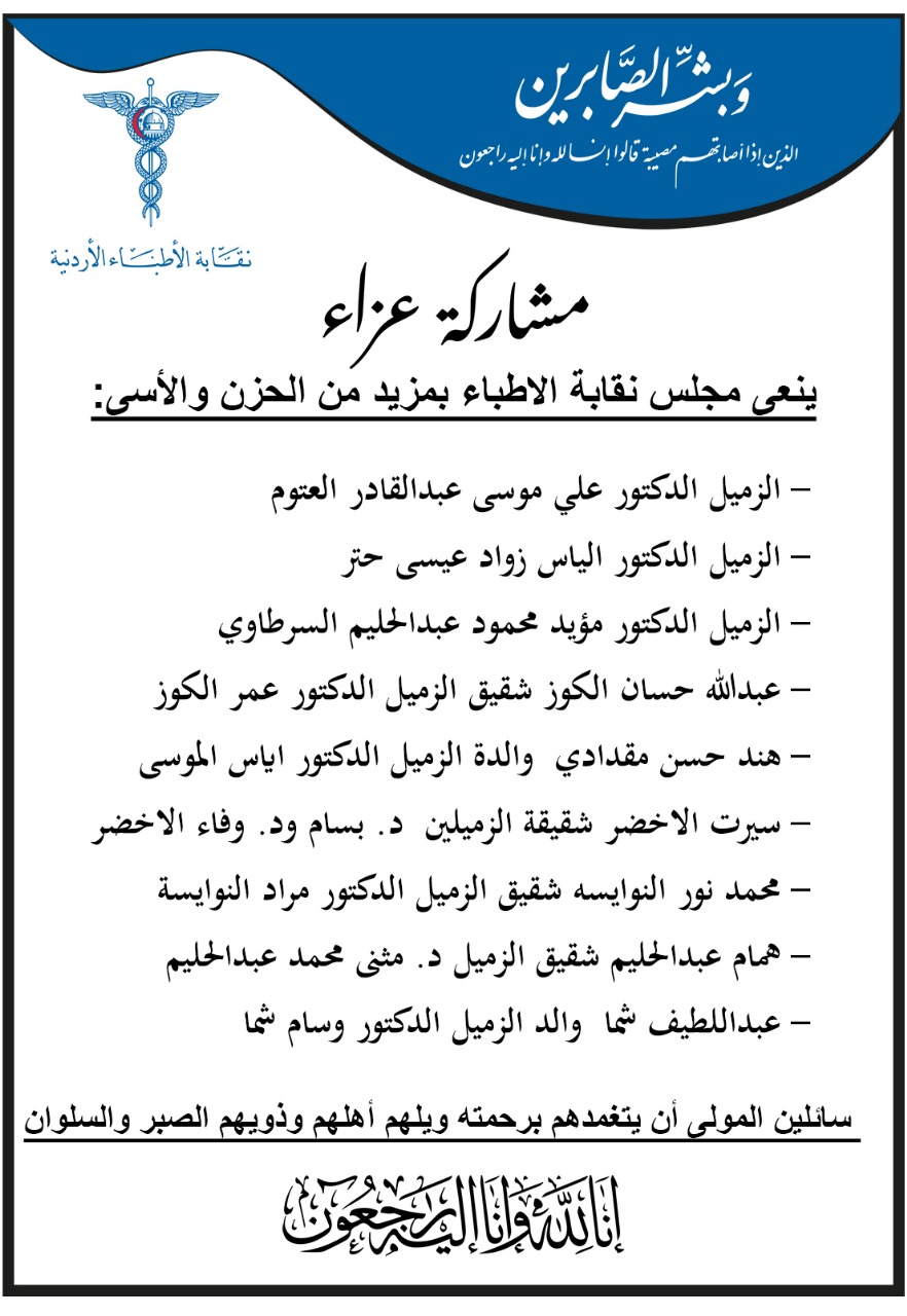 كما نعى مجلس نقابة الأطباء عددا من ذوي الهيئة العامة.