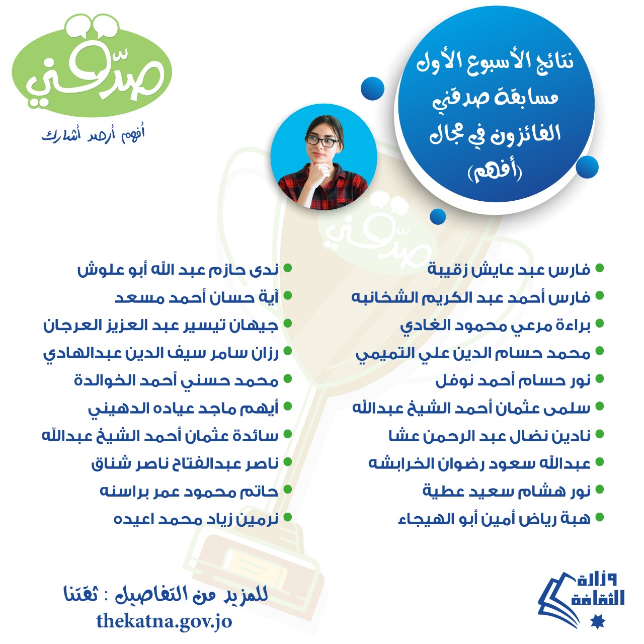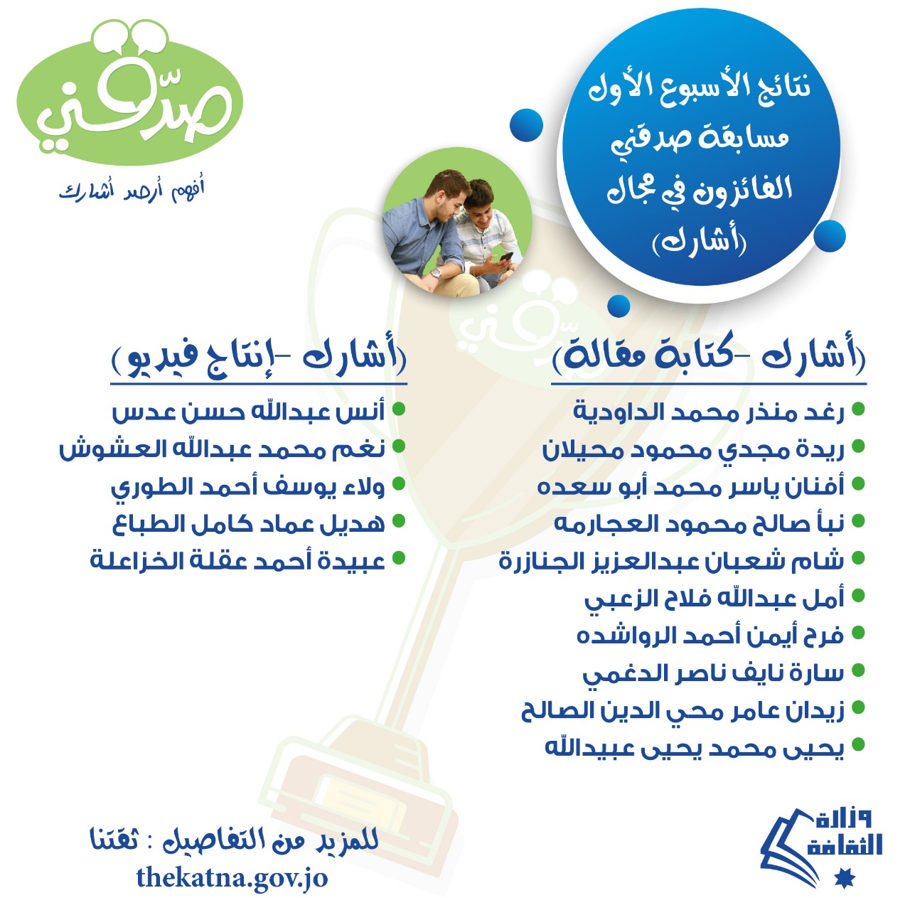 " وزارة الثقافة تُهنئ وتُعلن اسماء الفائزين بمسابقة صدقني "