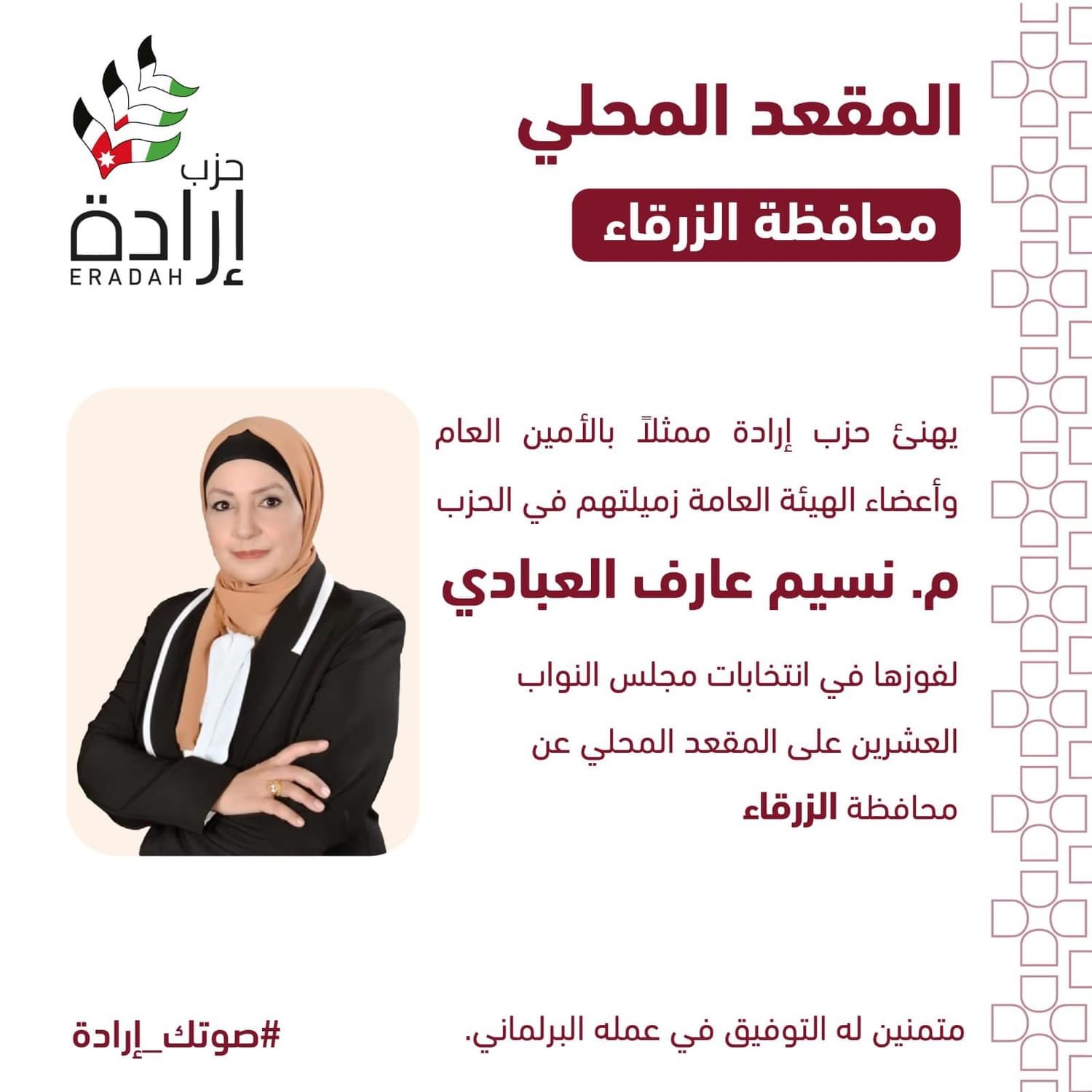 وإيماناً منّا بأن المشاركة السياسية لا تتوقف عند صناديق الاقتراع، فإننا نوجّه التحية والتقدير إلى الشعب الأردني الذي شارك في العملية الانتخابية، وندعو الجميع، سواء من شارك أو لم يشارك، إلى مزيد من الإنخراط في العمل السياسي، فنجاح الديمقراطية يتطلب من كُل مواطن المُساهمة في مُراقبة أداء مجلس النواب، ودفع الأحزاب لتنفيذ برامجها، وضمان أن تكون الإنتخابات المُقبلة خطوة أخرى نحو تعزيز الممارسة الديمقراطية في الأردن، وختاماً، نؤكّد أننا في حزب إرادة سنظل أوفياء لتعهُداتنا وبرامجنا.