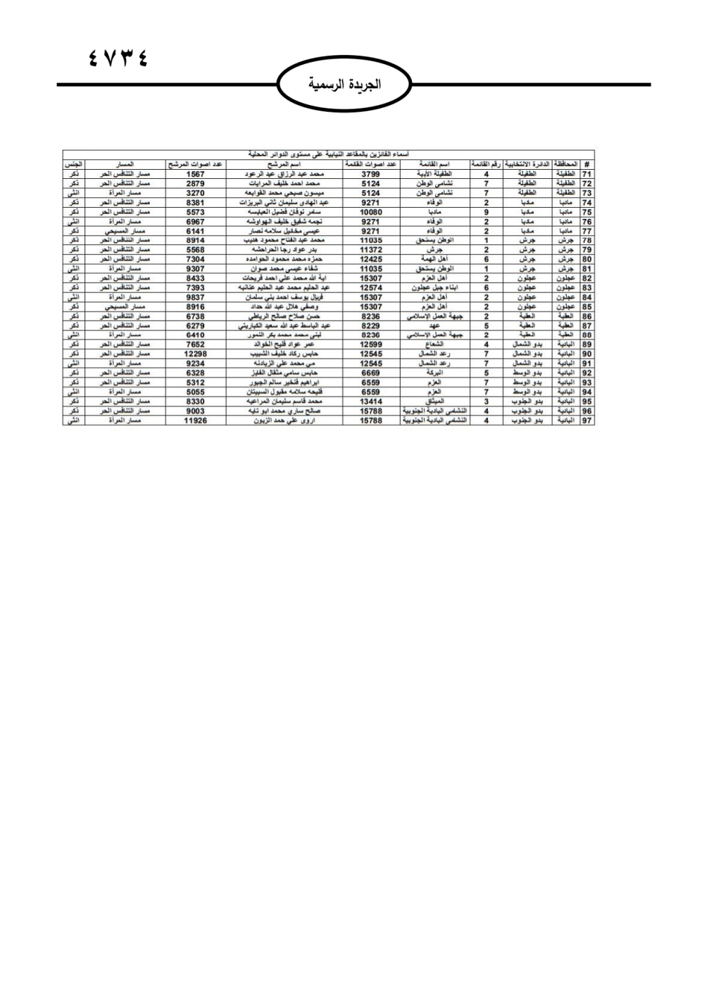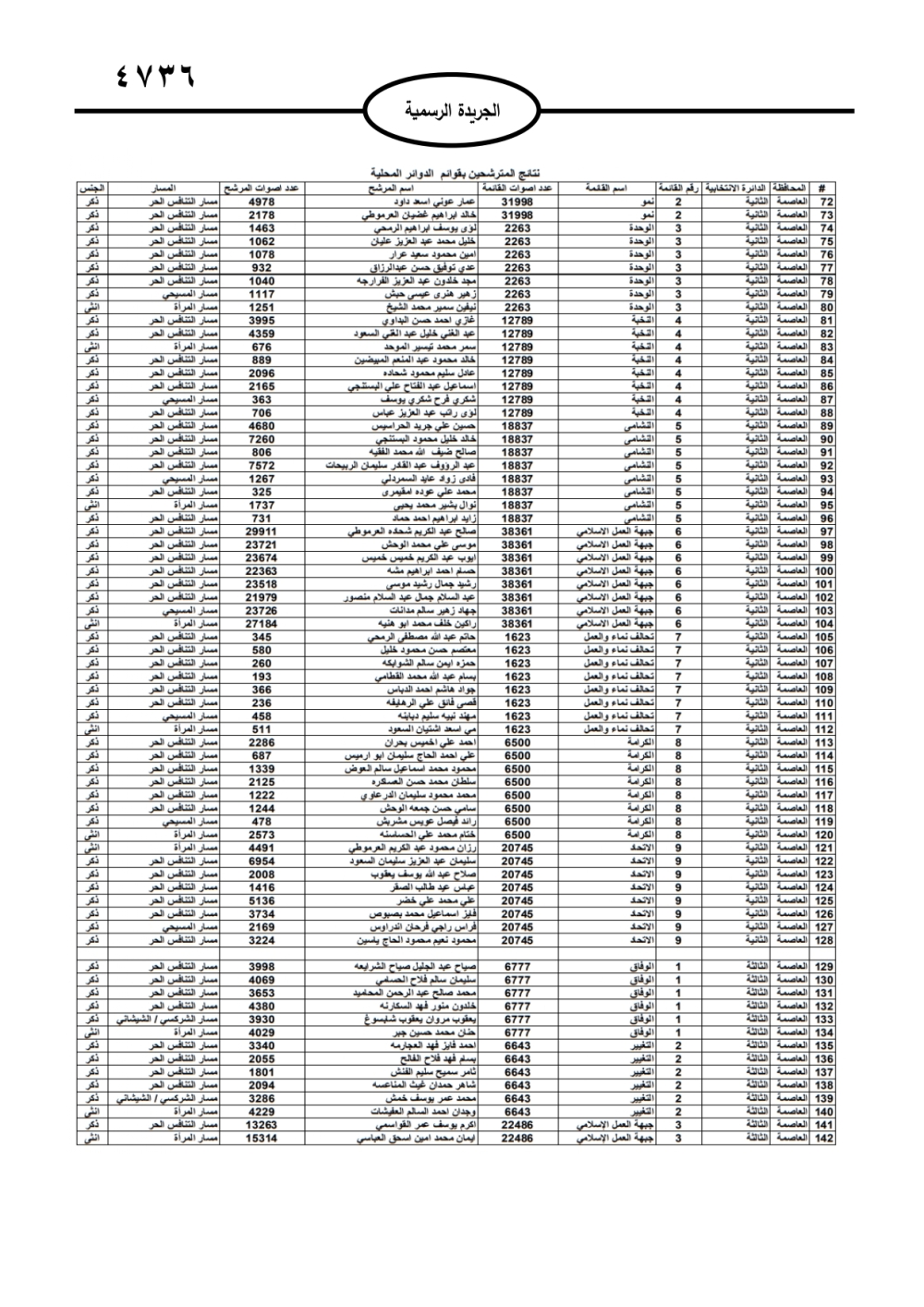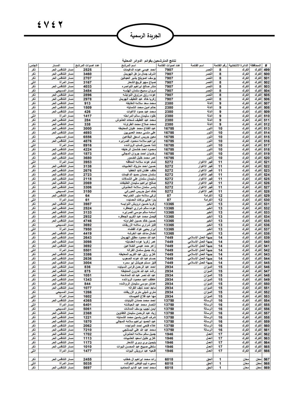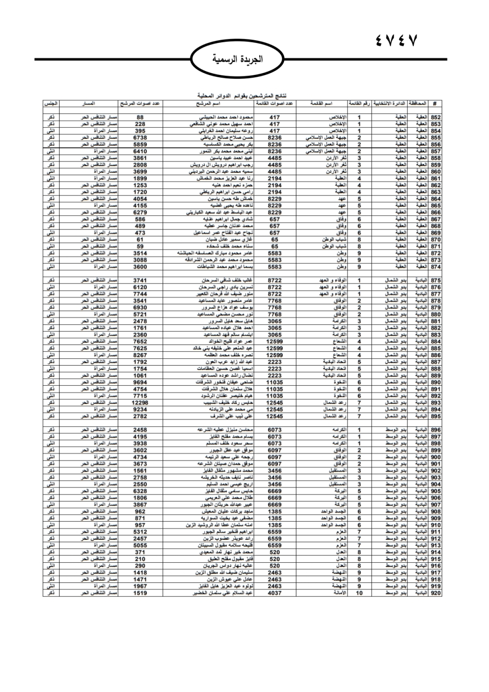 نشر النتائج النهائية للانتخابات في الجريدة الرسمية (أسماء)