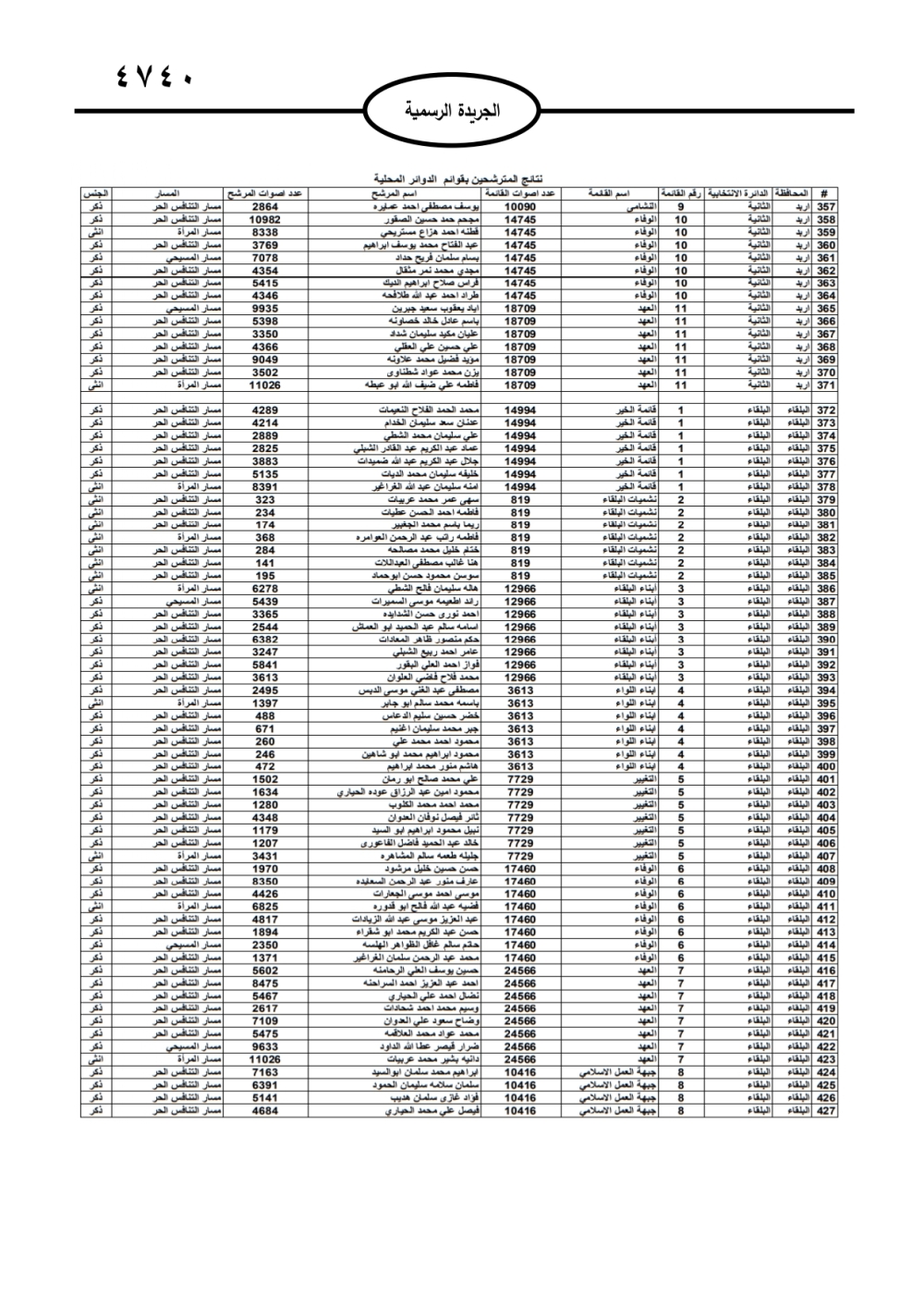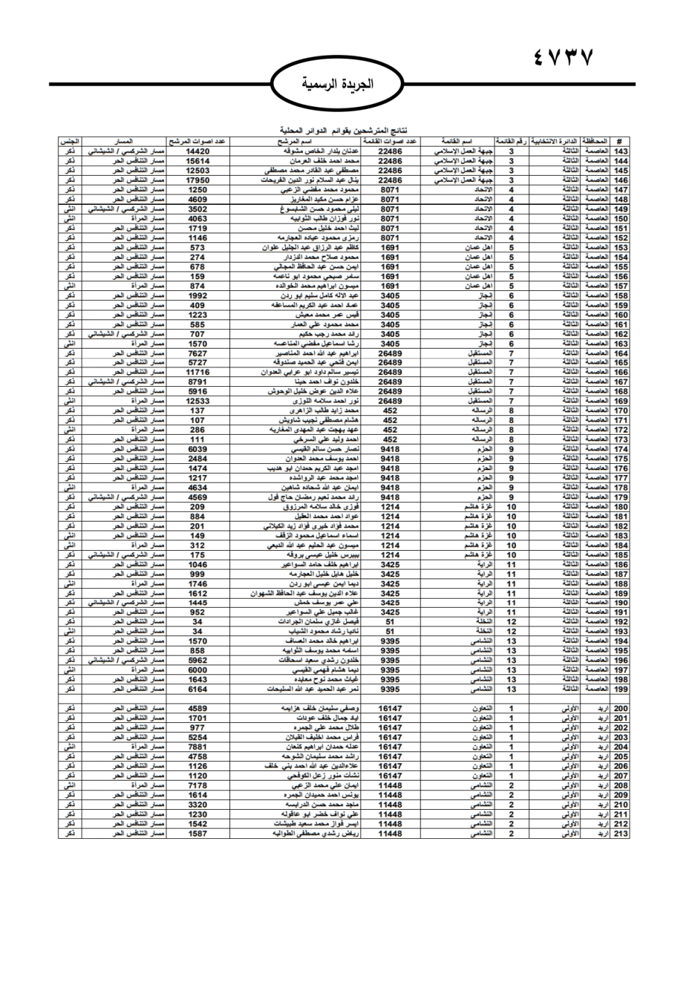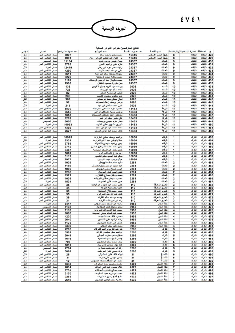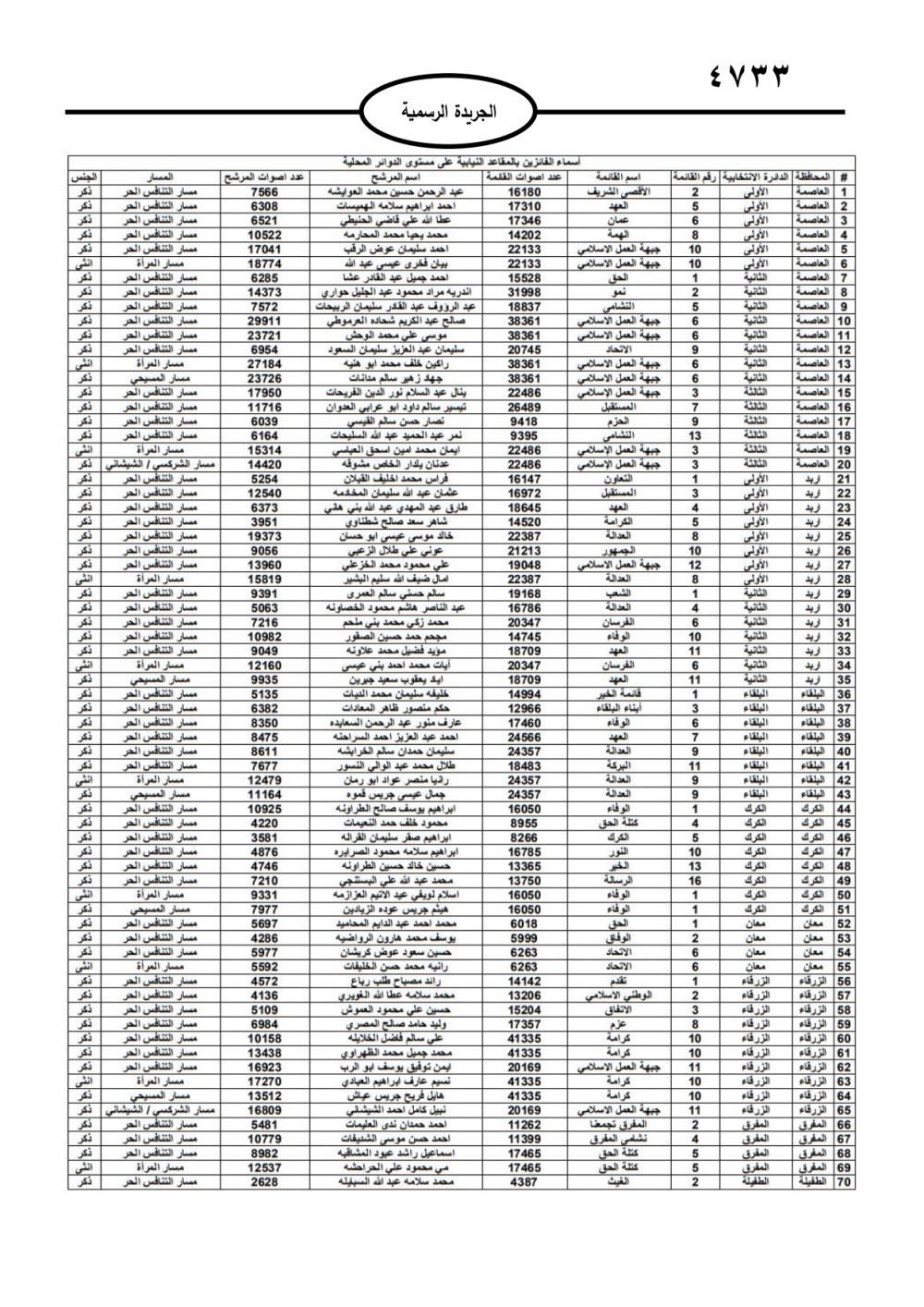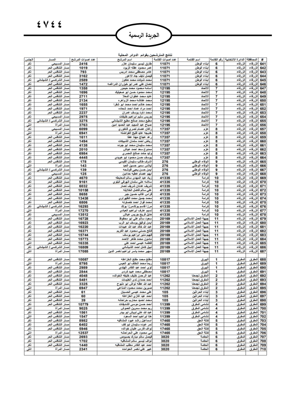 نشر النتائج النهائية للانتخابات في الجريدة الرسمية (أسماء)