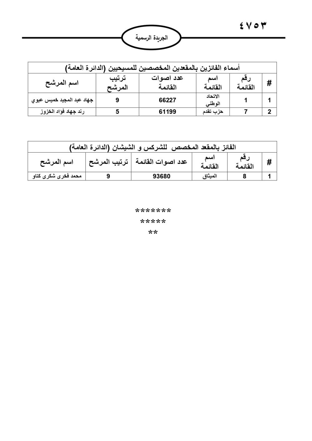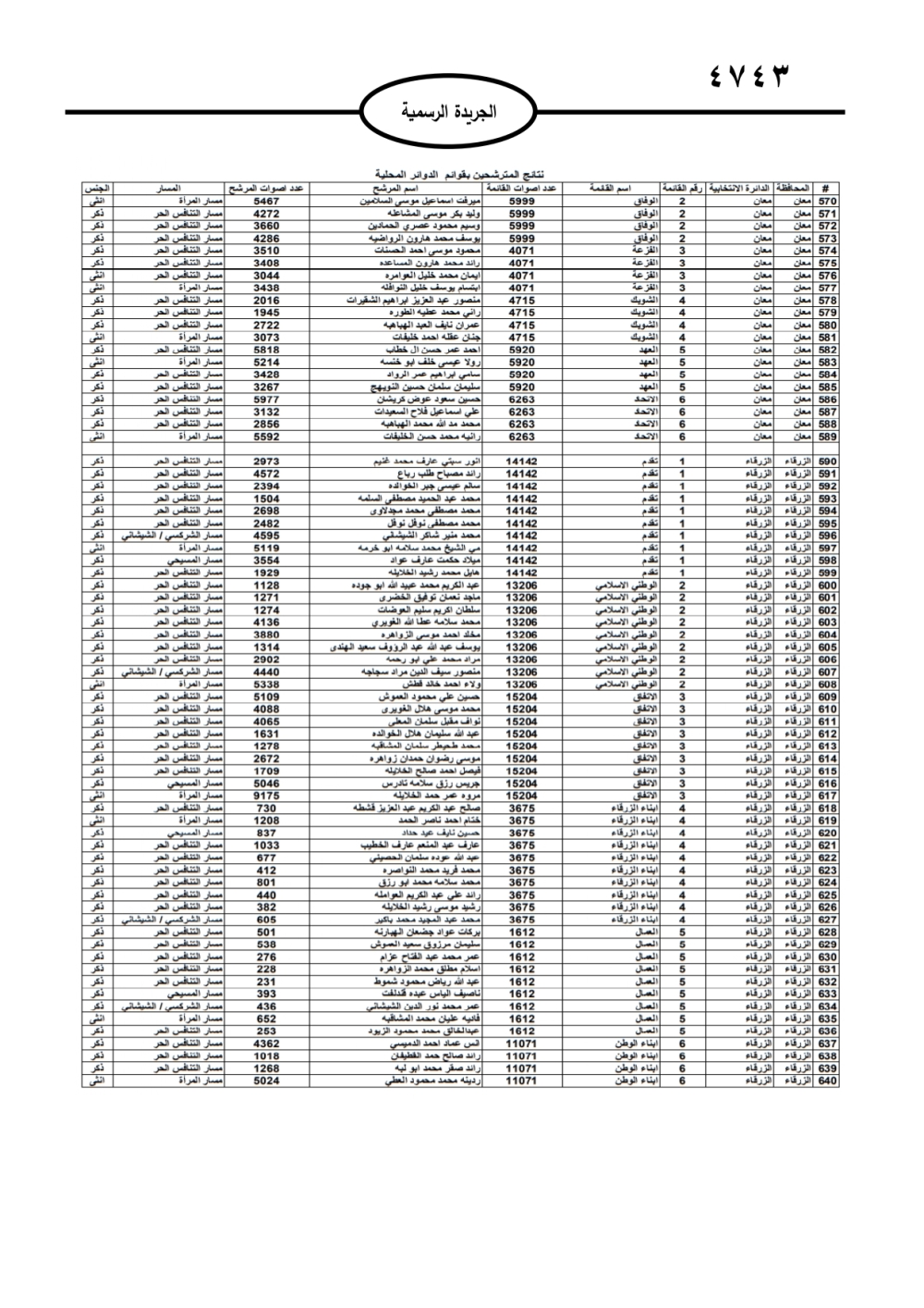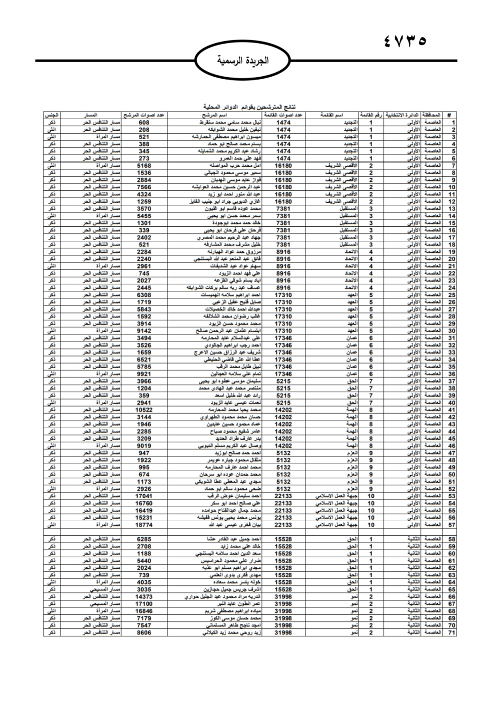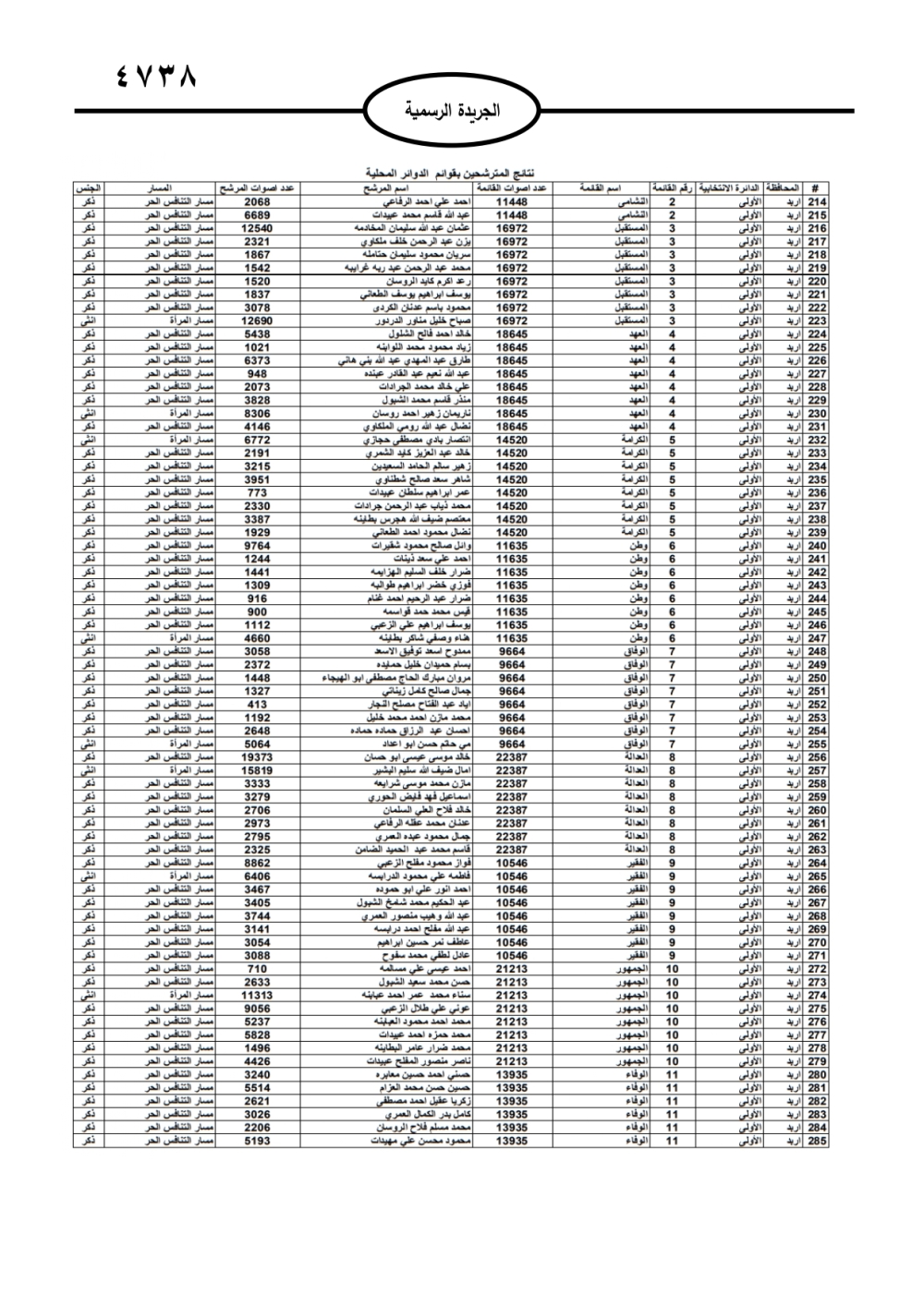 نشر النتائج النهائية للانتخابات في الجريدة الرسمية (أسماء)