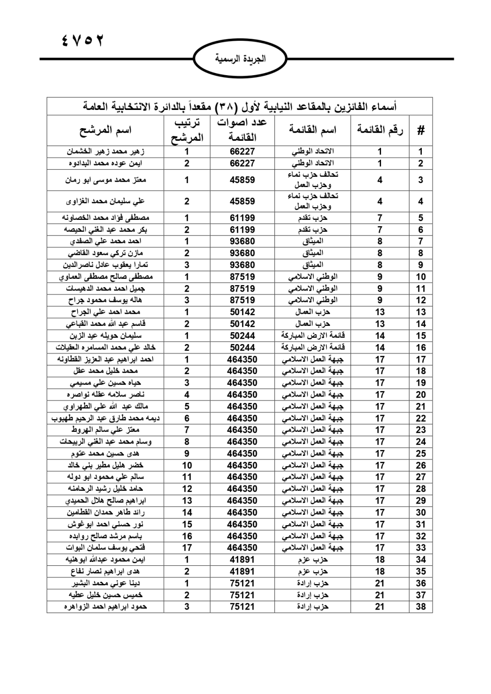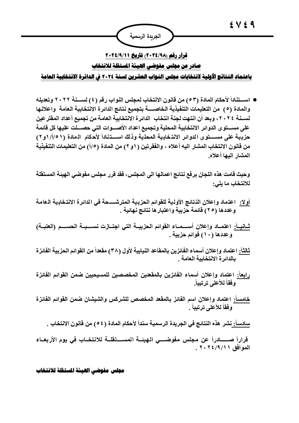 نشرت الجريدة الرسمية في عددها الصادر مساء امس السبت النتائج النهائية للانتخابات النيابية 2024.