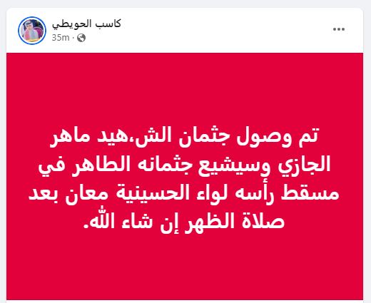 شقيق ماهر الجازي يعلن موعد ومكان دفن جثمان الشهيد