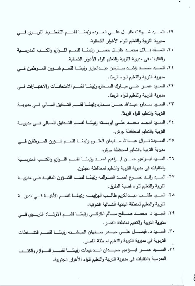قرر وزير التربية والتعليم الدكتور عزمي محافظة إجراء تشكيلات إدارية في مديريات التربية.